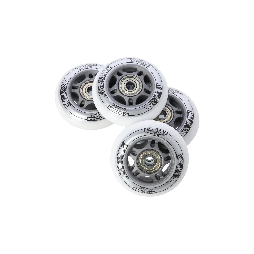 KOLEČKA PU 70x24 BÍLÉ (4KS) + LOŽISKA ABEC 7 (8KS) SESTAVA NILS EXTREME