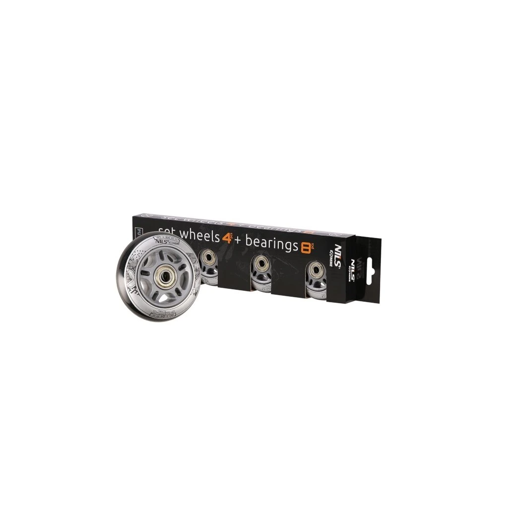 KOLEČKA PU 84x24 82A ČERNÉ (4KS) + ABEC-9 CHROME (8KS) NILS EXTREME