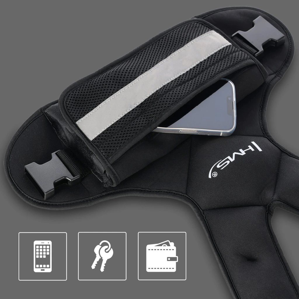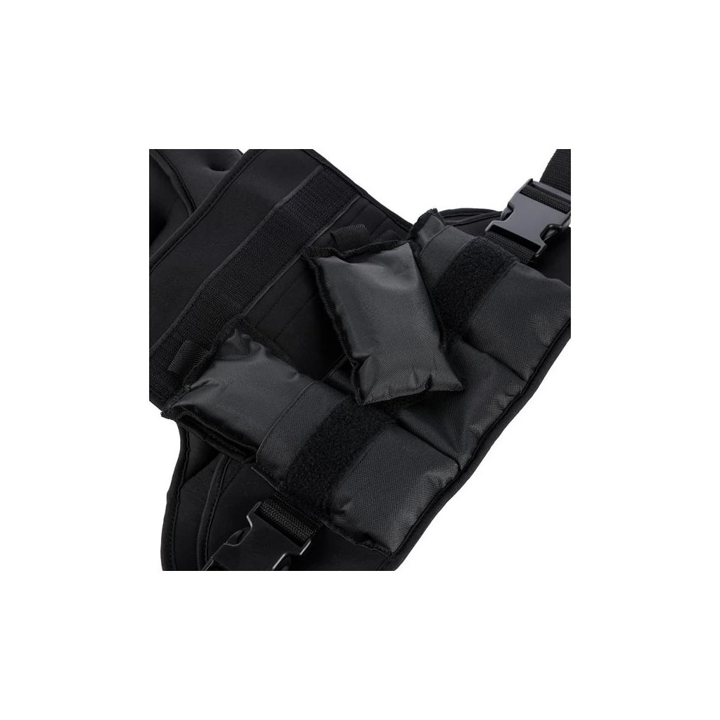 Vybavení bylo navrženo s ohledem na pohodlí uživatele. Regulovatelné popruhy umožňují dokonalé přizpůsobení jakékoliv postavě, a speciální neoprenový materiál je měkký, odolný proti potu a zabraňuje sklouzávání vesty i při intenzivních pohybech. Elastická síťovaná kapsa poskytuje prostor pro uložení telefonu, klíčů nebo peněženky, díky čemuž se trénink stává ještě praktičtějším.