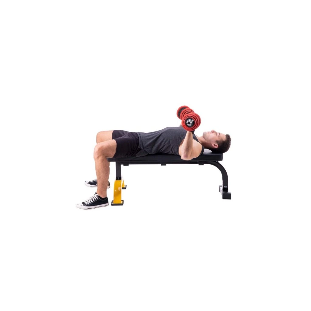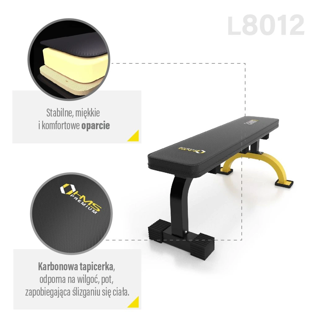Rovná lavice HMS Premium L8012 je ideální pro veškeré základní cviky s činkami, osami či vlastní vahou. Robustní konstrukce dokáže unést až 200 kg zátěže a pohodlná, vysoce polstrovaná opěrka zaručí pohodlný trénink. Jeden stabilizátor je rozšířen pro vysokou stabilitu a jistotu při tréninku i s velkými váhami.