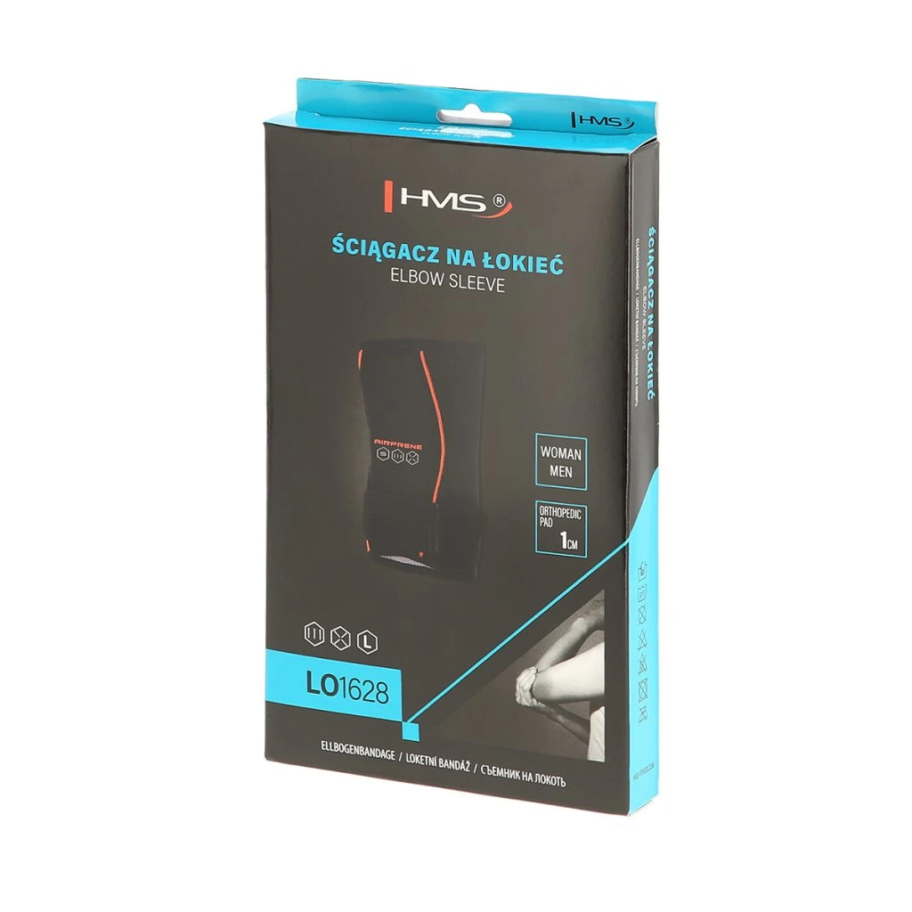 HMS LO1628 je bandáž lokte se speciální tlakovou vložkou, která stimuluje šlachy a úpony v místě "tenisového lokte". Pomocí popruhu se suchým zipem se nastaví intenzita tlaku vložky, ta pak během pohybu lokte stimuluje průtok krve, čímž se dostaví pocit úlevy v důsledku lepšího prokrvení bolestivého místa. Tlaková vložka postižené místo v podstatě masíruje.