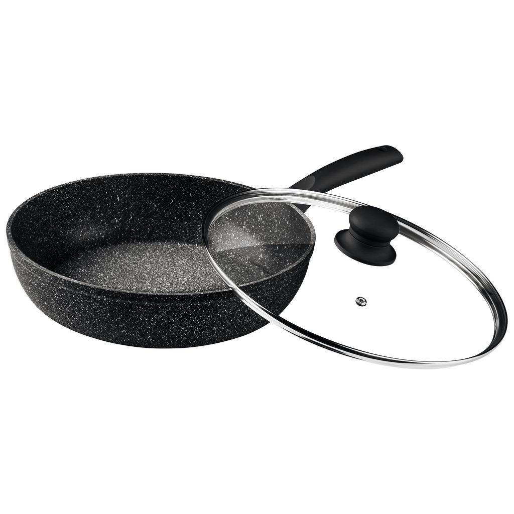Pánev opatřena vnitřním marble povrchem odolným proti oděru a připalování, silným dnem a velmi elegantní soft rukojetí