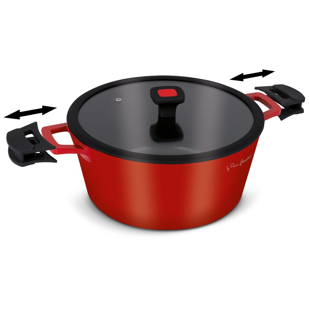 Kastrol opatřen vnitřním nepřilnavým povrchem odolným proti oděru a připalování, silným dnem a