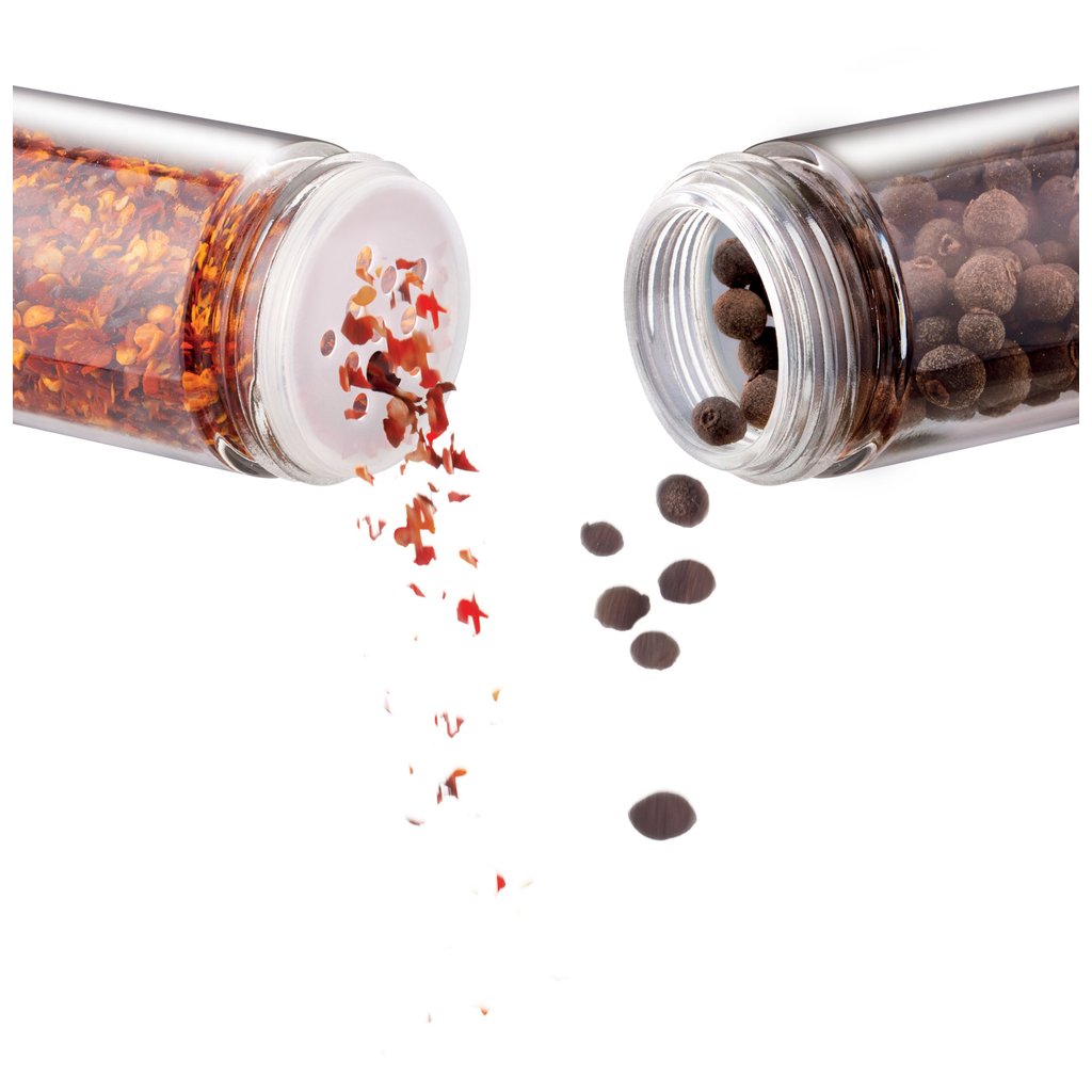 Sada kořenek na otočném stojanu v moderním designu Kořenky vyrobeny z odolného skla vhodné i do myčky na nádobí bez víčka 12 ks
