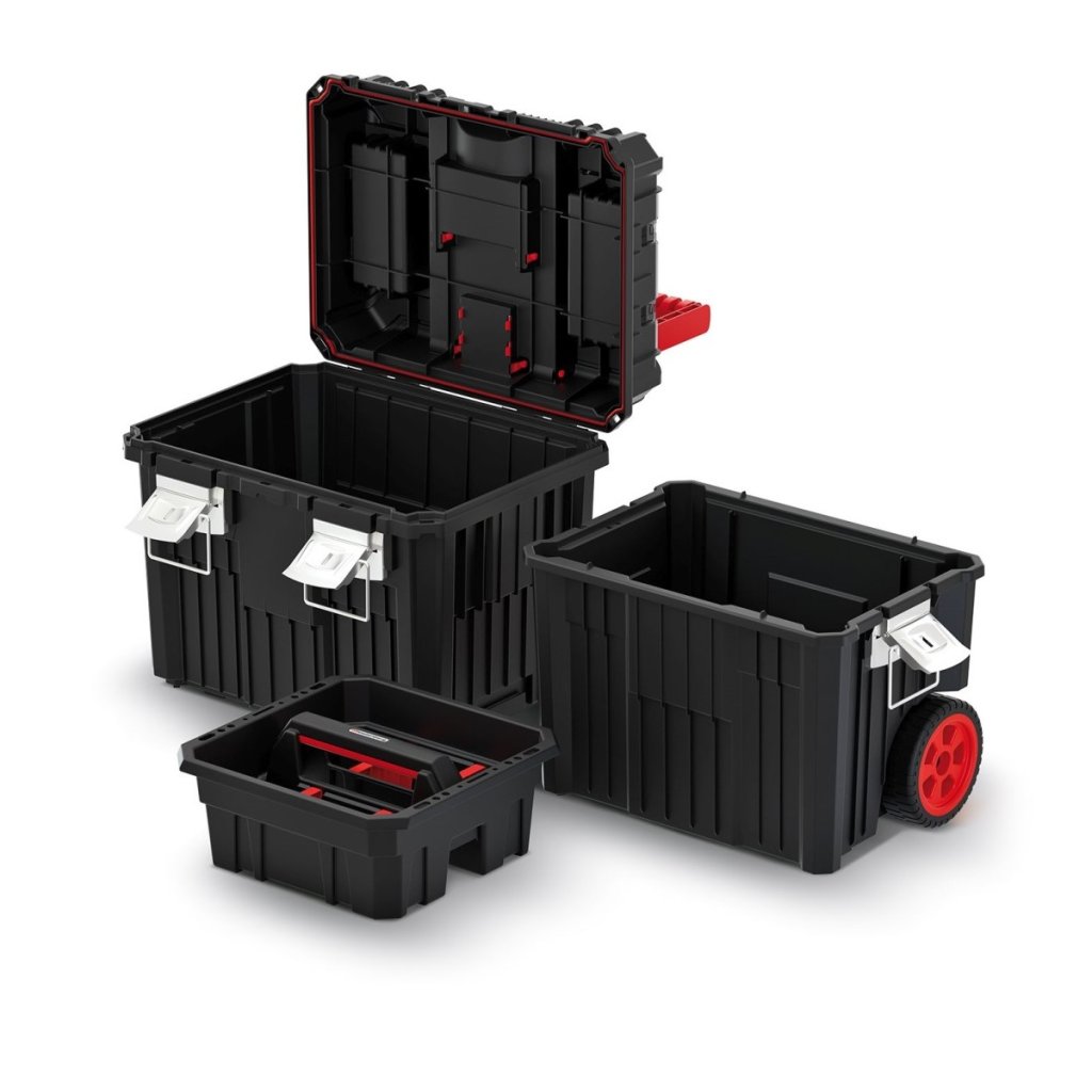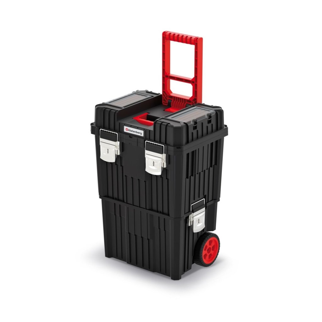 Modulární kufr HEAVY na kolečkách s kovoými zámky. Je opatřen vnitřní hlubokou vložkou na nářadí a 2 organizéry na víku.