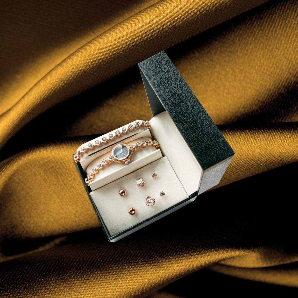 - Dodává se s doplňujícím náramkem a třemi páry doplňujících náušnic.