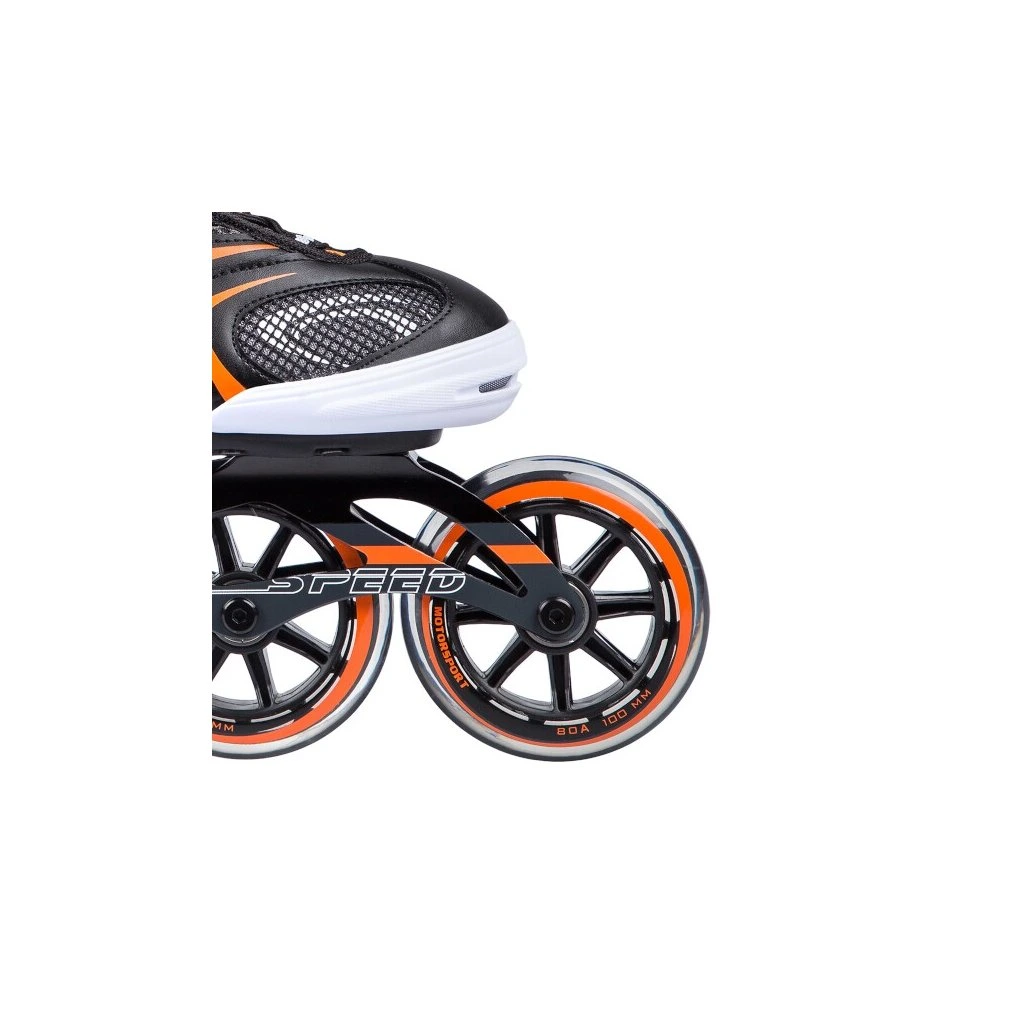 In-Line brusle NILS EXTREME NA 1060 S vhodné pro zkušenější jezdce. PU kolečka o průměru 100 mm a tvrdosti 82A. Ložiska ABEC 9.