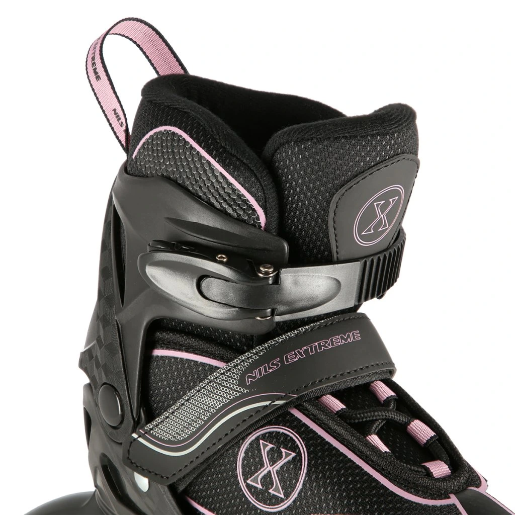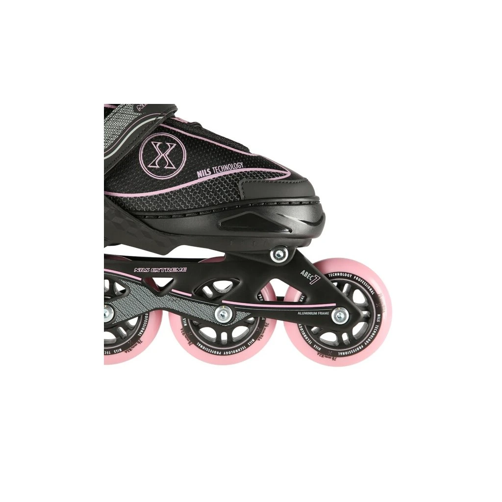 Kolečkové brusle NILS Extreme NA11008 jsou určeny pro rekreační jízdu po rovných plochách. Ložiska ABEC7, zapínání na trojkombinaci, rostoucí bota nastavitelná do 4 velikostí.