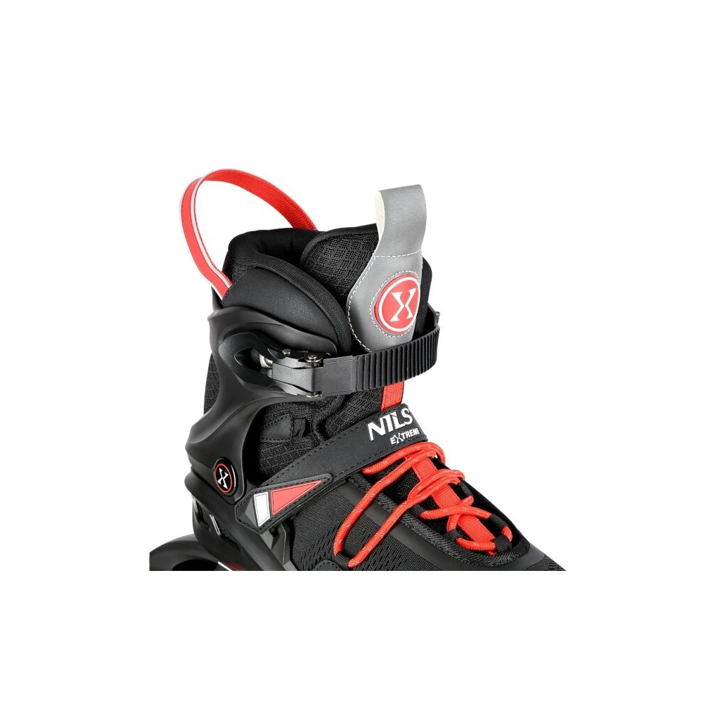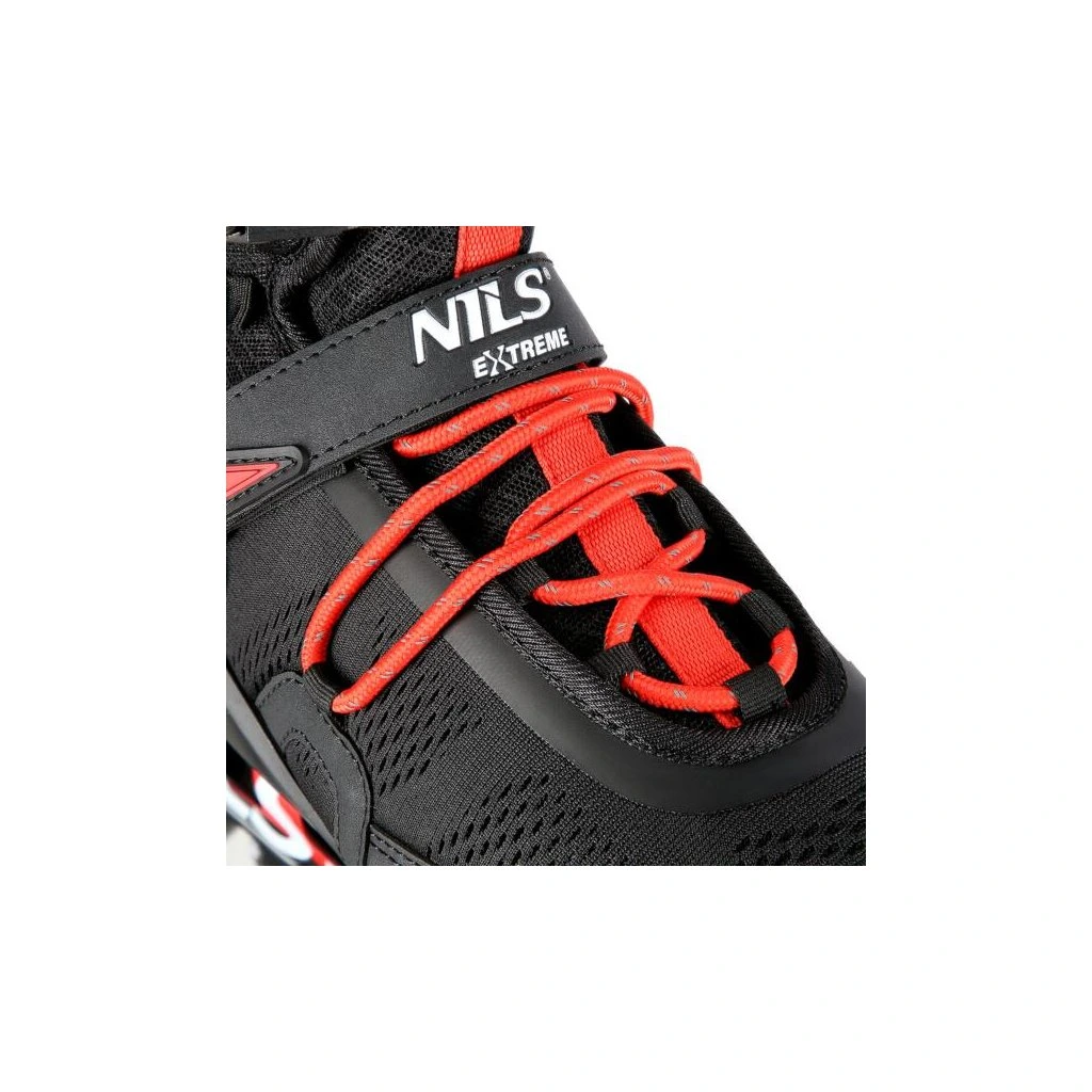 Kolečkové brusle NILS Extreme NA14124 jsou určeny k rekreačním projížďkám pro začínající a středně pokročilé bruslaře. Kolečka PU 80/82A, ložiska ABEC 7, zapínání na řemínek se suchým zipem, dvousekční přezku a šněrování.