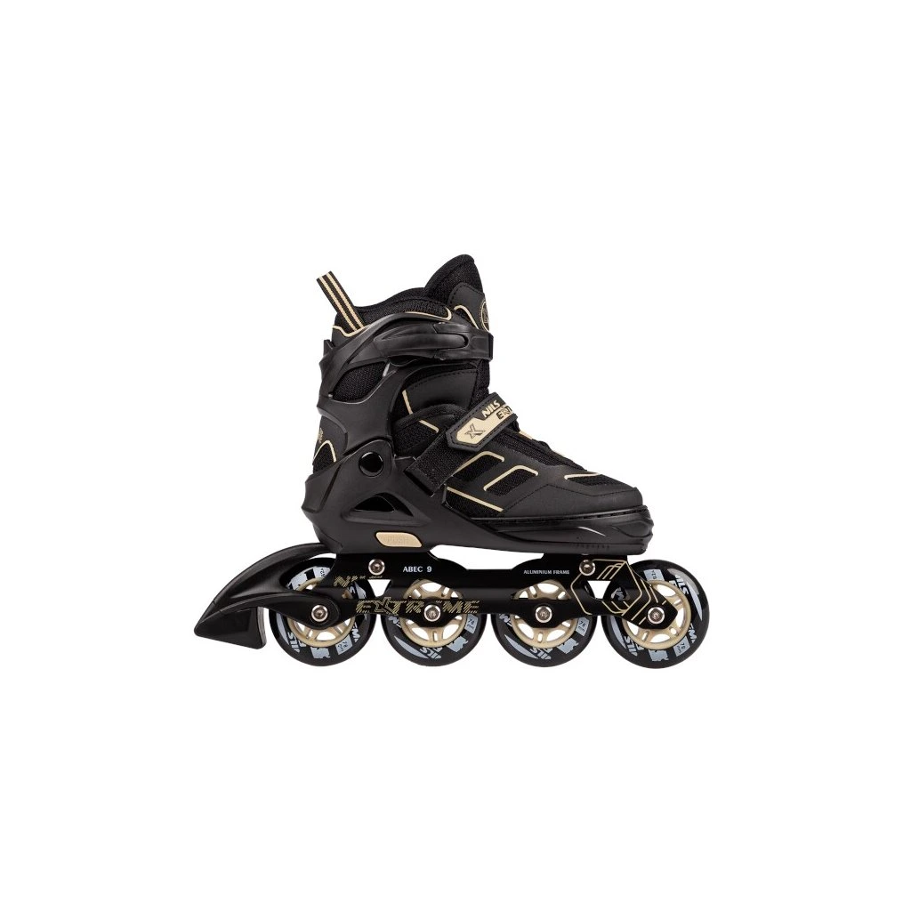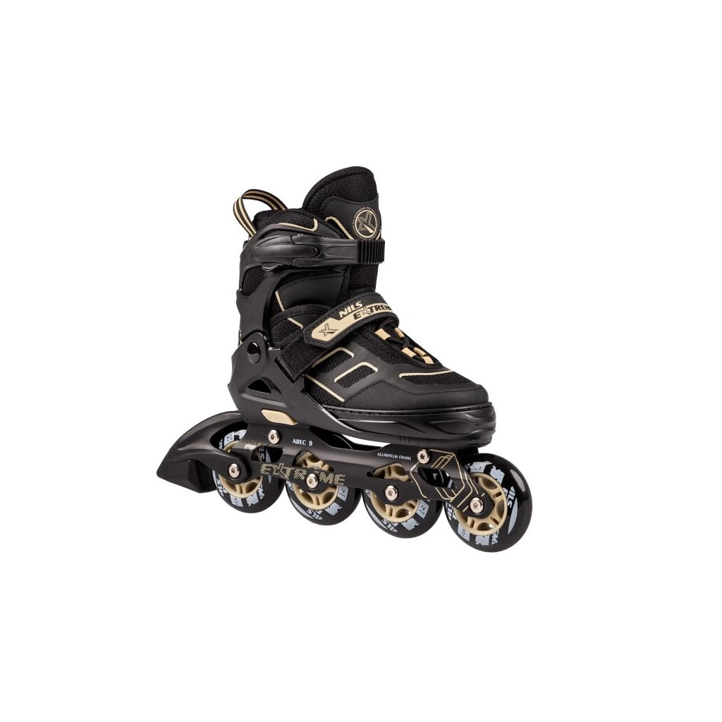 In-line brusle NILS Extreme NA14174 s hliníkovým podvozkem, PU kolečky s ložisky ABEC 9. Bota nastavitelná do 4 velikostí.