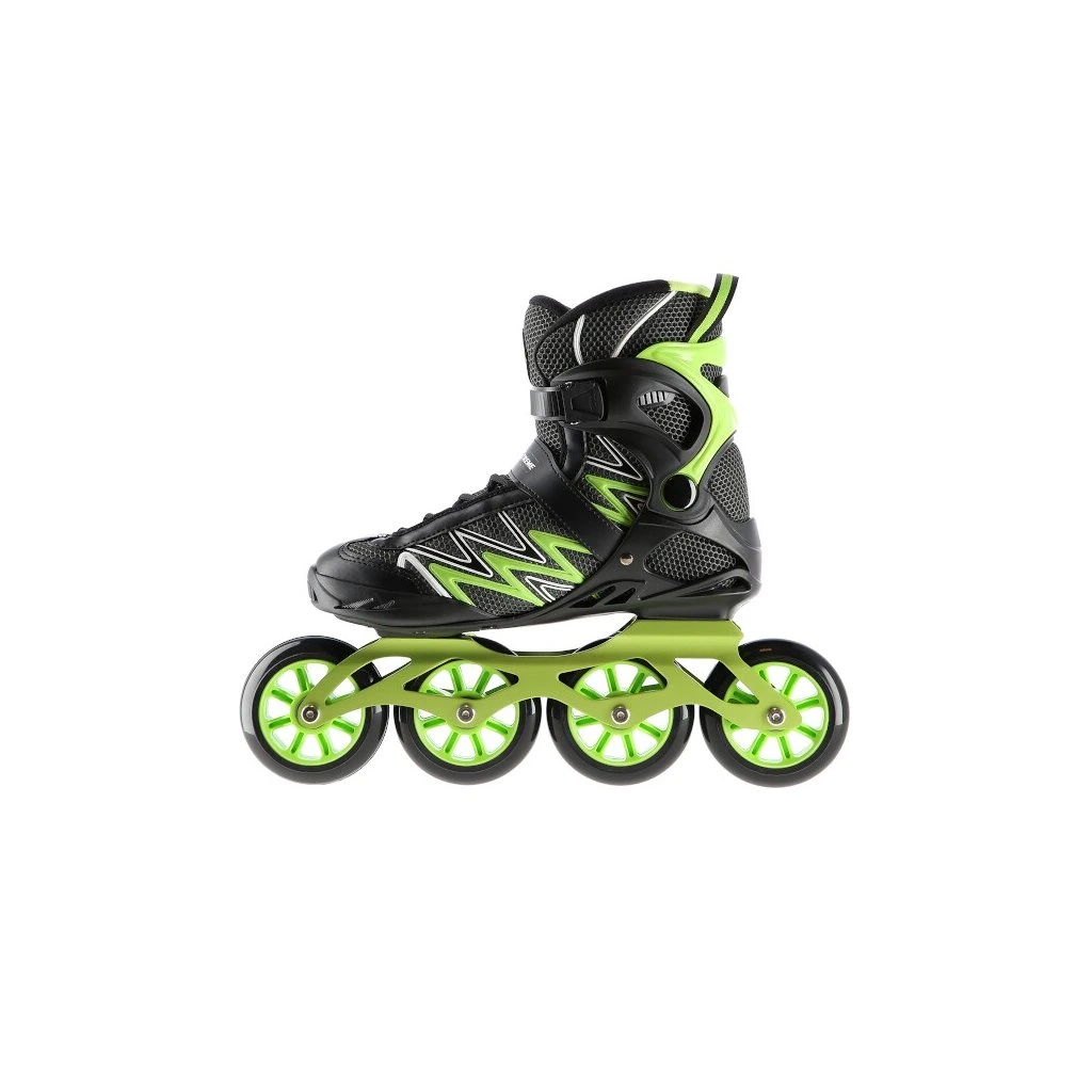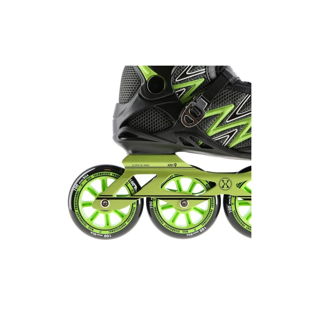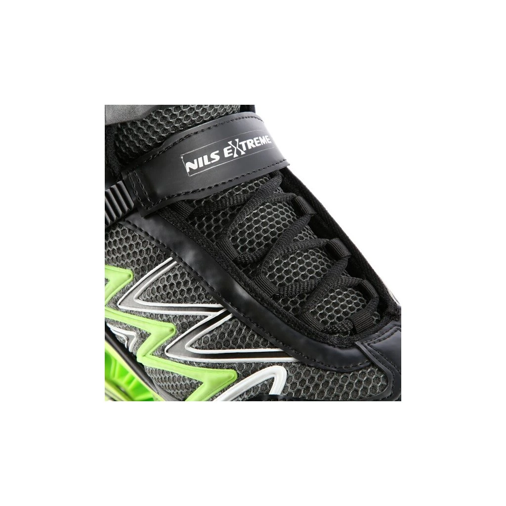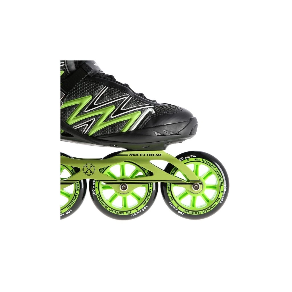 Kolečkové brusle NILS Extreme NA8660 jsou určeny k rekreační jízdě středně pokročilých bruslařů po rovných a hladkých stezkách, jako například po asfaltu.Lehká a odolná bota je vyrobena z kombinace síťoviny MESH a pěny EVA, korpus je vybaven ventilačními otvory, tyto vlastnosti zaručují prodyšnost boty, snižují pocení nohy a předchází tak vlhnutí vložky. Systém ventilace a tvarovaná stélka boty tak přímo ovlivňují zvýšení uživatelského komfortu. Skelet modelu NA8660 je vyroben z polypropylenu, který je velice odolný a vydrží i ty nejtvrdší pády, zároveň stabilizuje chodidlo v oblasti kotníku. Bezpečnost brusle zvyšuje zapínání pomocí dvojice přezek a šněrování.Velká kolečka s tvrdostí 85A jsou uložena v hliníkové liště vyrobené precizní CNC technologií, dobře přiléhají k podkladu a částečně pohlcují nervnosti. Model NA8660 je osazen ložisky ABEC 9, která se vyznačují precizním zpracováním a nízkým odporem, kdy jízda má dobrou setrvačnost a na bruslích tak lze dosáhnout vysoké rychlosti, nebo urazit dlouhou vzdálenost bez vynaložení zbytečné síly. Brusle nemají brzdu.