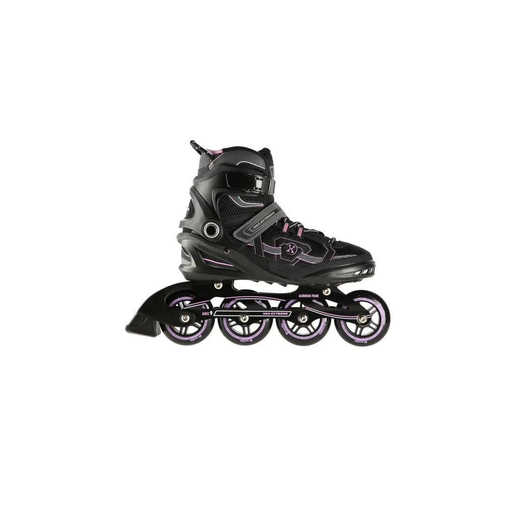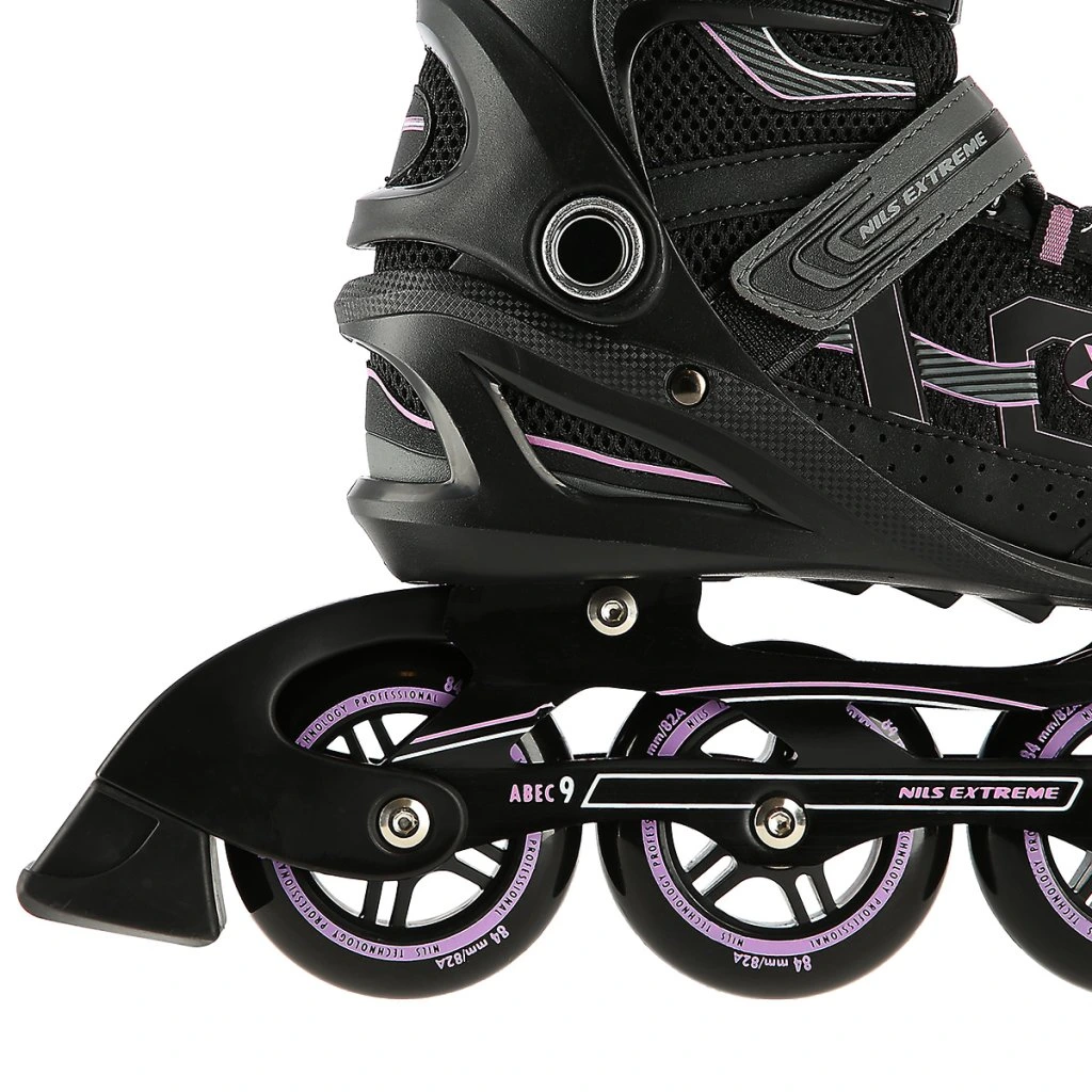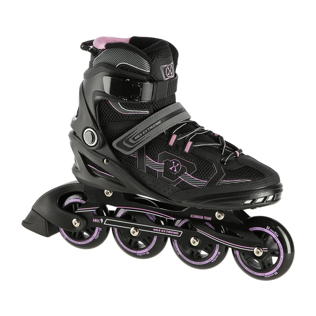 Kolečkové brusle NILS Extreme NA9157 jsou určeny k rekreačním projížďkám pro středně pokročilé a pokročilé bruslaře. Kolečka PU 84/82A, ložiska ABEC 9, zapínání na řemínek se suchým zipem, dvousekční přezku a šněrování.