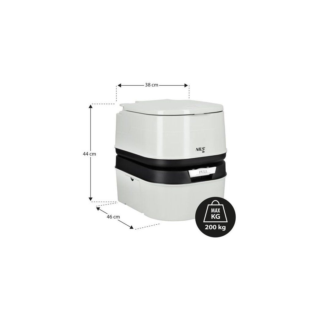 NC0023 má vysokou nosnost až 200 kg, což umožňuje bezpečné používání i lidmi s větší tělesnou hmotností. Toaleta má kompaktní rozměry (46 x 44 x 38 cm), takže ji snadno umístíte do stanu, letního domku nebo karavanu. I přes svou pevnou konstrukci si zachovává relativně nízkou hmotnost, což usnadňuje její přepravu a obsluhu. Vysoká odolnost materiálu a snadné čištění zaručují, že vydrží mnoho sezón.