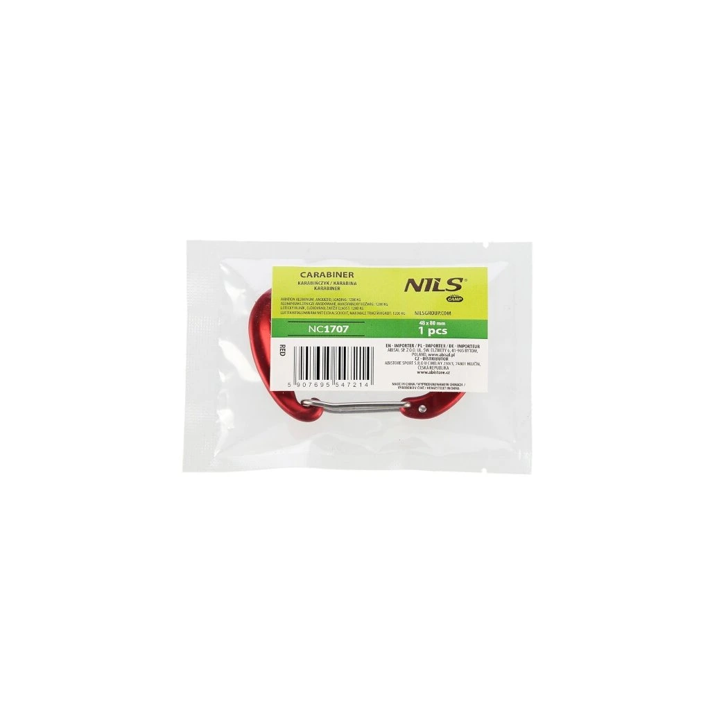 NC1707 ČERVENÁ HLINÍKOVÁ KARABINA 12KN NILS CAMP