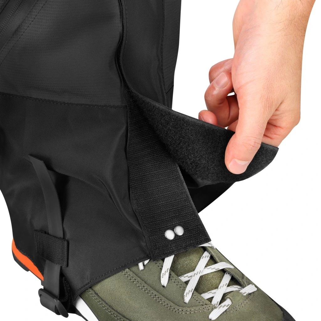 Návleky jsou vyrobeny z pevného nylonu, který je odolný vůči oděru, vlhkosti a povětrnostním vlivům. Poskytuje spolehlivou ochranu, přitom je lehký a pružný, takže nijak neomezuje v pohybu. Horní část je vybavena stahovací gumičkou, která udržuje návleky na místě a zabraňuje jejich sklouzávání během chůze.