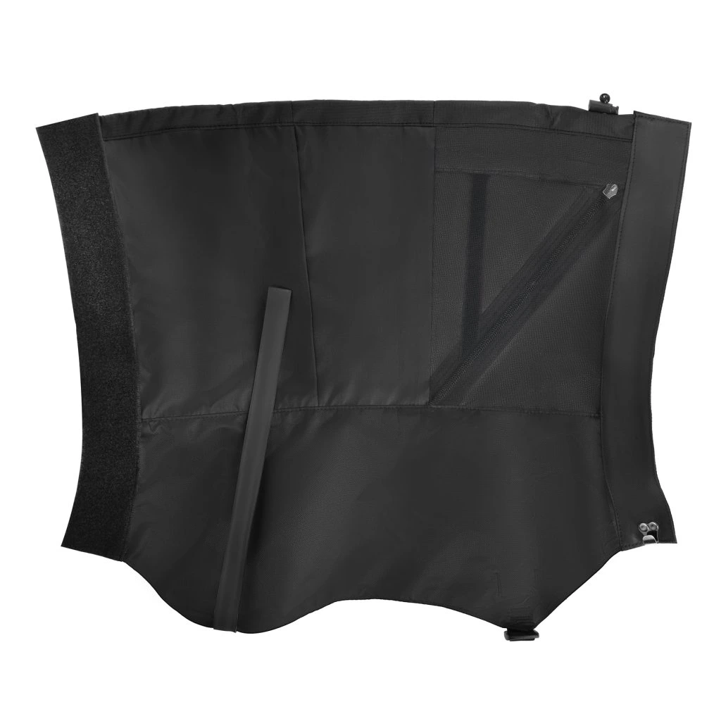 V horní polovině návleků je umístěna klopa na zip a suchý zip, pod kterou se nachází síťovina zajišťující odvětrávání nohy v případě, kdy se zrovna nebrodíme hlubokým sněhem. Klopu lze navíc jednoduše založit do postranní kapsy, aby při chůzi nijak nepřekážela, což zvyšuje pohodlí a praktičnost návleků.