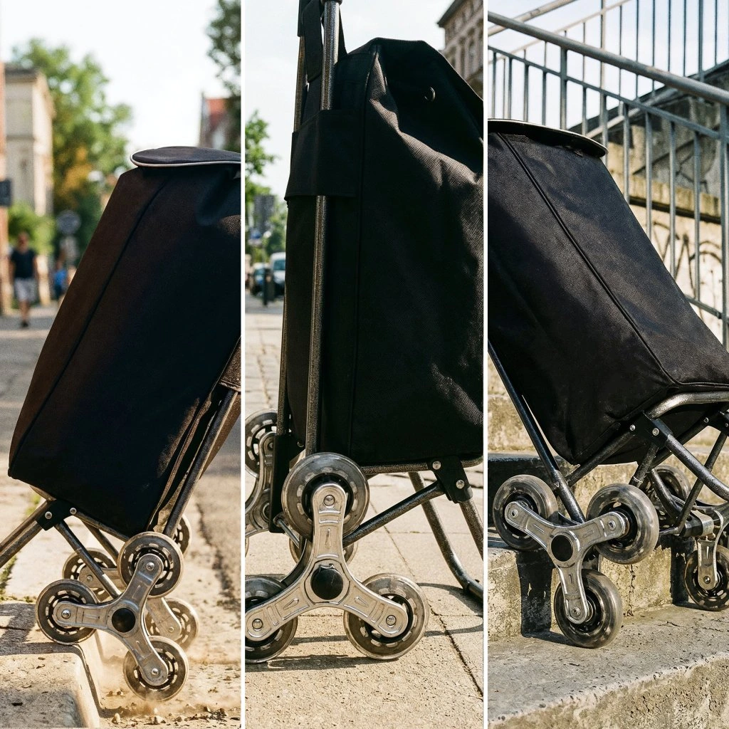 Zvláštní pozornost si zaslouží systém koleček – tři kolečka do trojúhelníku se otáčejí kolem své osy, což výrazně usnadňuje překonávání schodů, obrubníků a jiných překážek. Toto řešení je ideální pro obyvatele bytových domů a osoby pohybující se v městském prostoru.