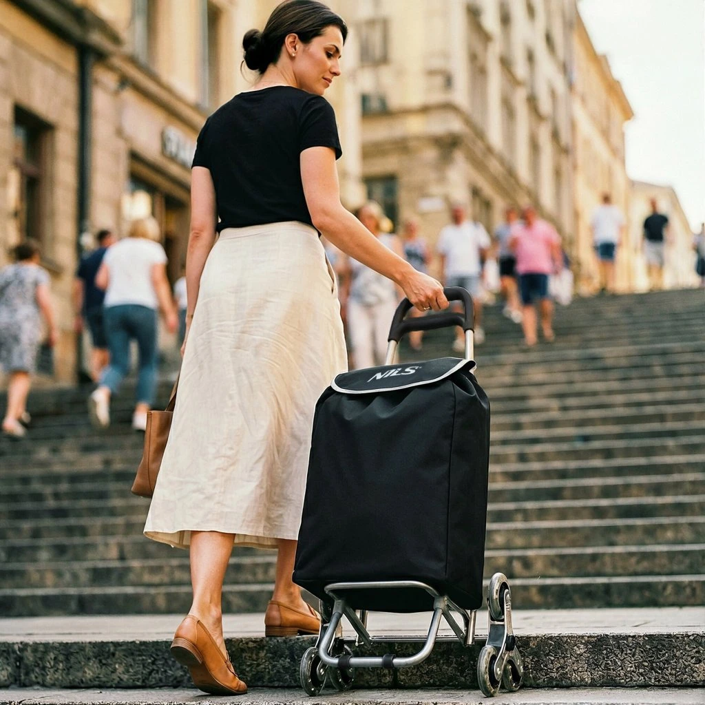 Nákupní taška na kolečkách NC17206 značky NILS Camp je funkční a moderní vozík, který se skvěle hodí na každodenní nákupy, na trh, na cesty nebo na výlety. Kombinuje velkou kapacitu, vysokou odolnost a kompaktní tvar, který usnadňuje skladování a přepravu.