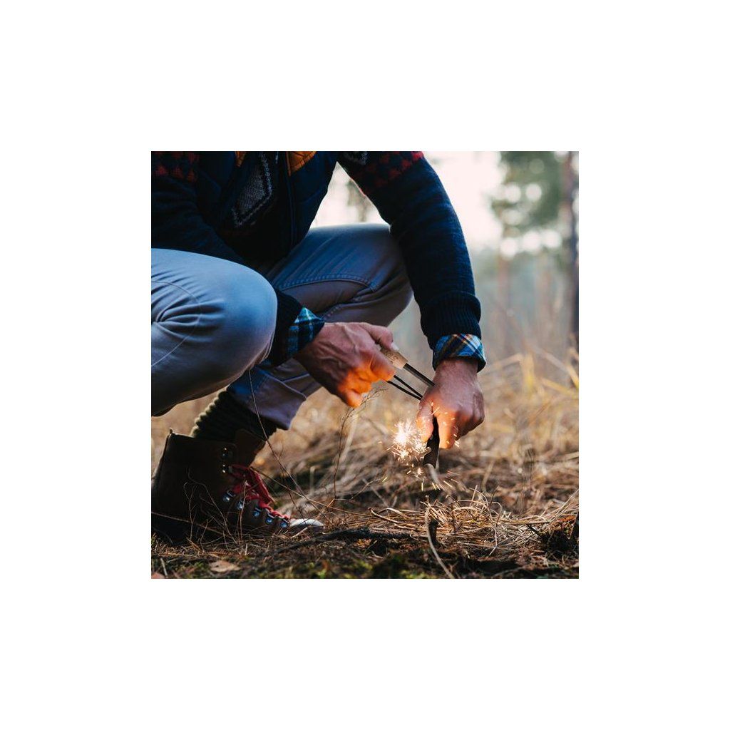 Zapálení ohně pomocí křesadla NC1792 je velmi jednoduché. Stačí trocha troudu, do něj naškrábeme pár hoblin a následně škrtneme, aby vznikly silné jiskry schopné rychle zapálit oheň. V případě použití opravdu suchého troudu není potřeba škrábat hobliny z křesadla a stačí rovnou škrtnout. Díky intuitivnímu použití zvládne práci s křesadlem i začátečník.