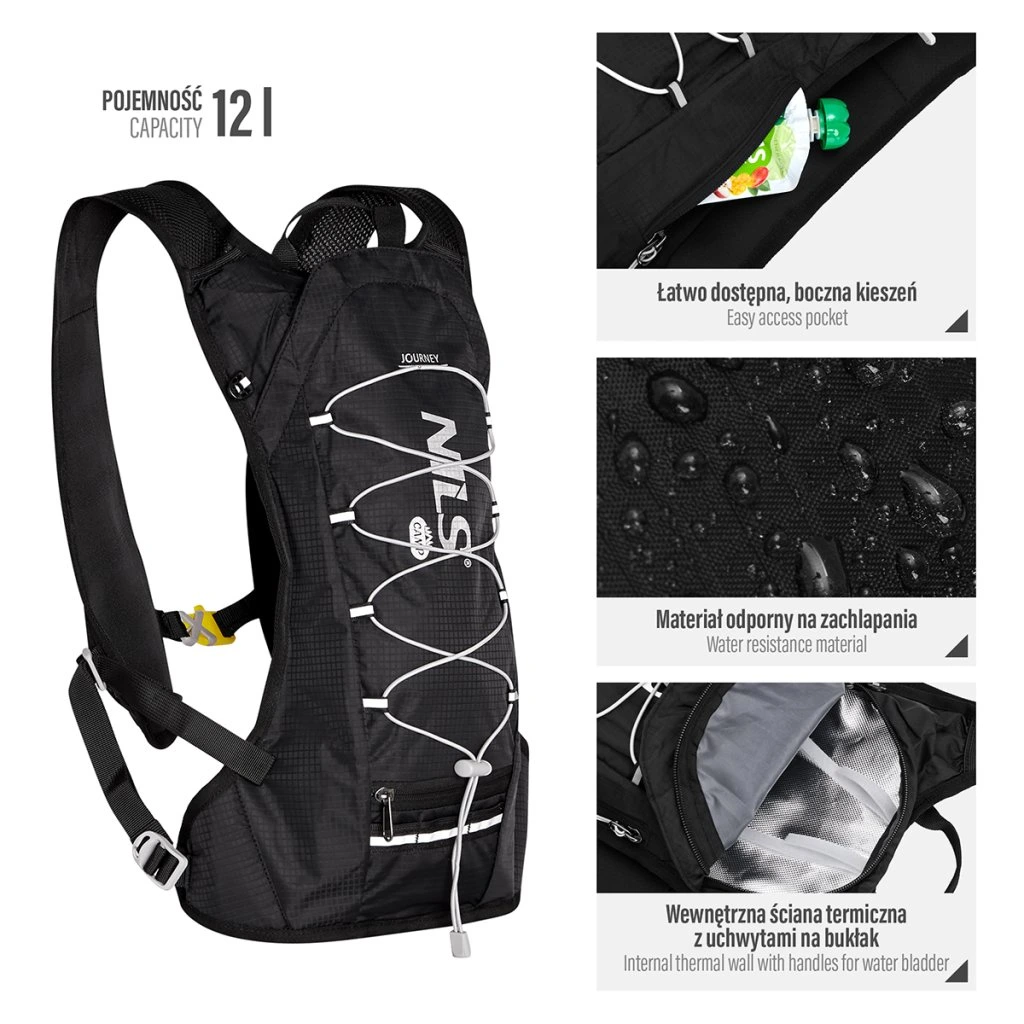 NILS Camp NC1797 Journey je lehký batoh o objemu 12 litrů, který je ideální na jednodenní výlety, dlouhé procházky, jízdu na kole nebo běhání.