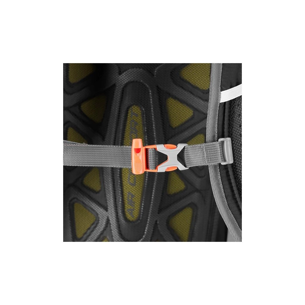 Na přezce hrudního popruhu je integrovaná záchranná píšťalka pro zvýšení bezpečnosti v případě nouze. Bederní pás nejen rovnoměrně rozkládá hmotnost, ale také stabilizuje batoh a navíc nabízí kapsy na drobnosti, jako je svačina, klíče nebo telefon.