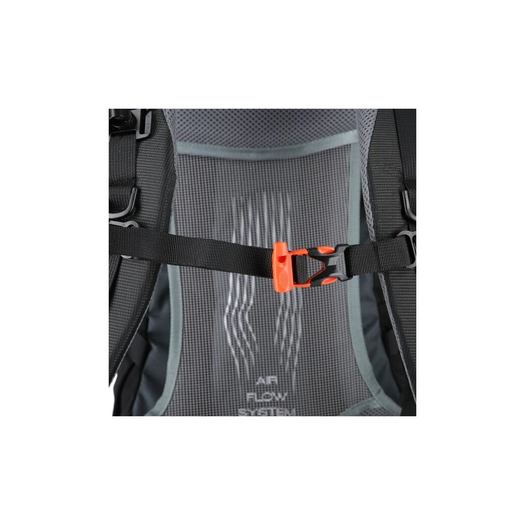 Přezka hrudního řemínku funguje jako nouzová píšťalka, která je nezbytnou součástí výbavy pro případ, že byste v nouzi potřebovali přivolat pomoc. Batoh Ghoster je také vybaven reflexními prvky na přední straně, které zvyšují viditelnost uživatele při osvícení.
