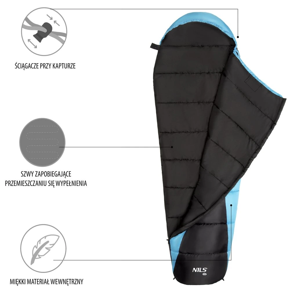 Spací pytel, typu mumie, NILS Camp NC2012 využijete během chladných nocí při kempování, spaní pod širým nebem a nebo jen při stanování na zahradě.
