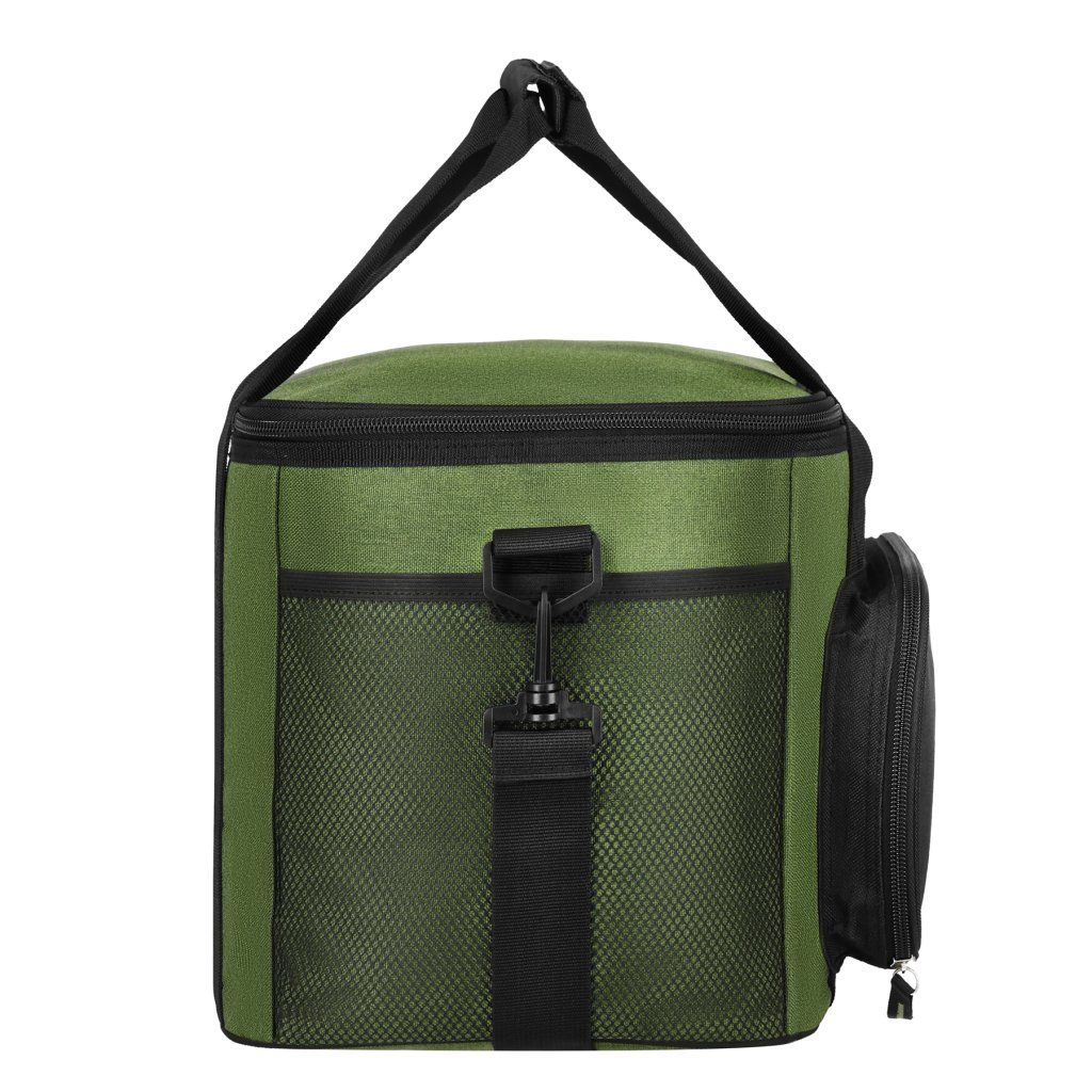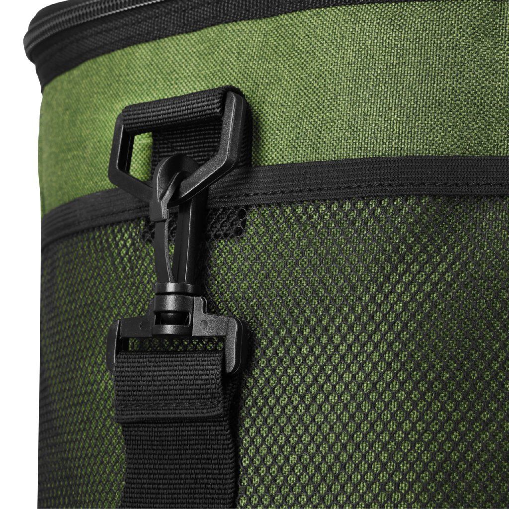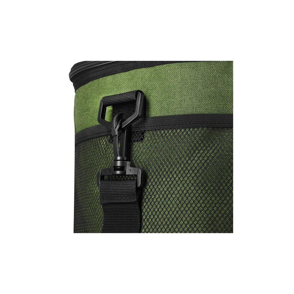 Hlavní prostor tašky je zakončen odolnou a pro potraviny bezpečnou vrstvou PEVA, která účinně izoluje vnitřní prostor a udržuje správnou teplotu uložených produktů. Další vrstva PE zvyšuje izolační účinnost, zatímco odolný vnější materiál - polyester 600D - chrání obsah před vlhkostí a mechanickým poškozením. Díky tomu se taška osvědčí bez ohledu na počasí a roční období.