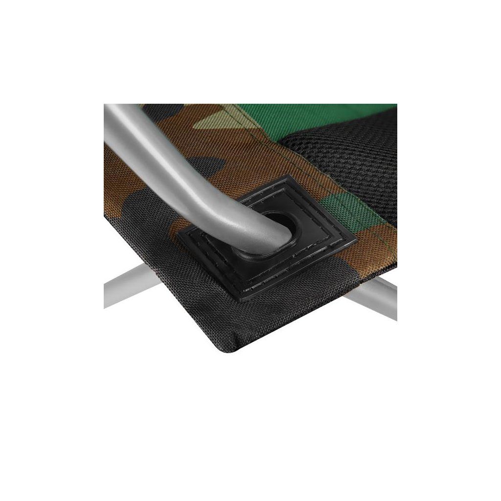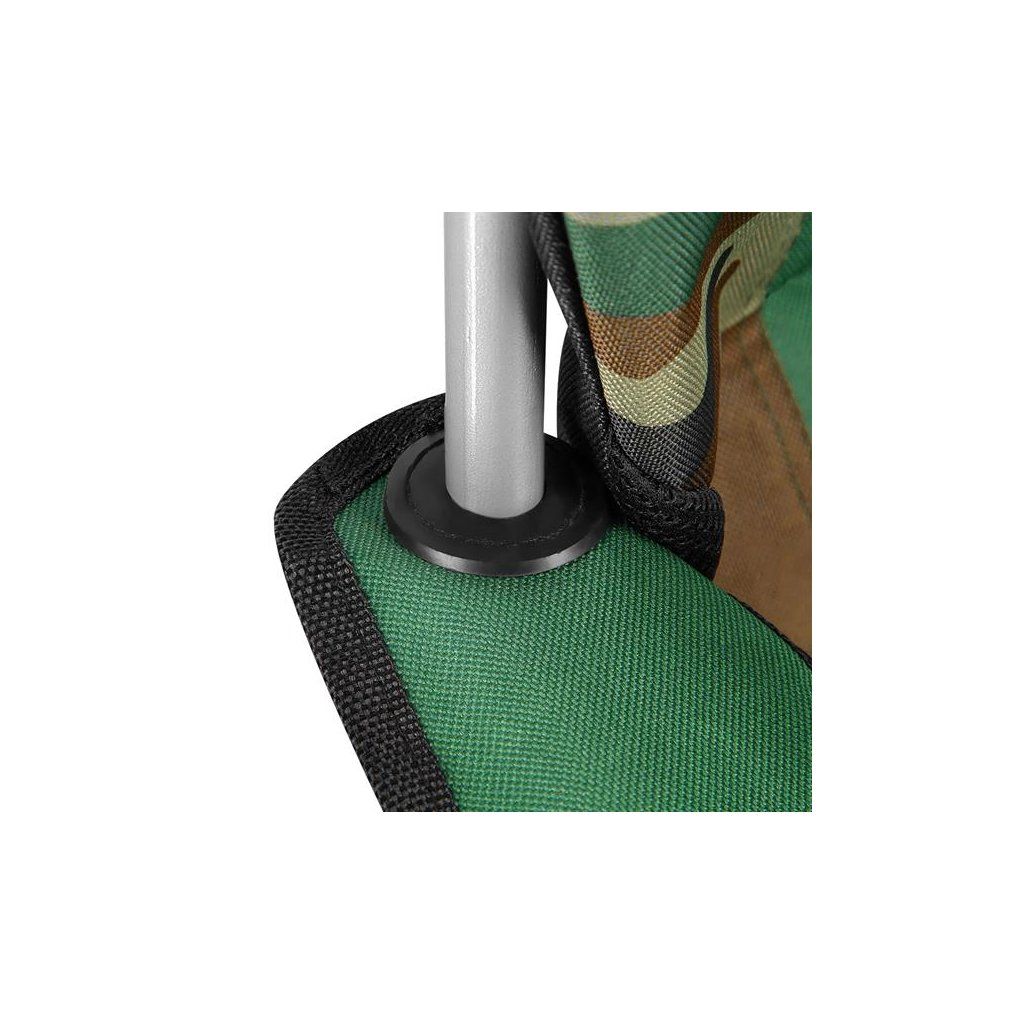 Jedná se o univerzální křeslo, které obstojí v jakýchkoliv podmínkách a terénech. Za jeho stabilitu odpovídají pevné ocelové profily o průměru 16 mm. Díky robustní konstrukci a polyesteru v úpravě 600D Oxford, který je velmi odolný, má křeslo nosnost až 130 kg. Doplněním jsou protiskluzové nožky, které zabraňují posouvání.
