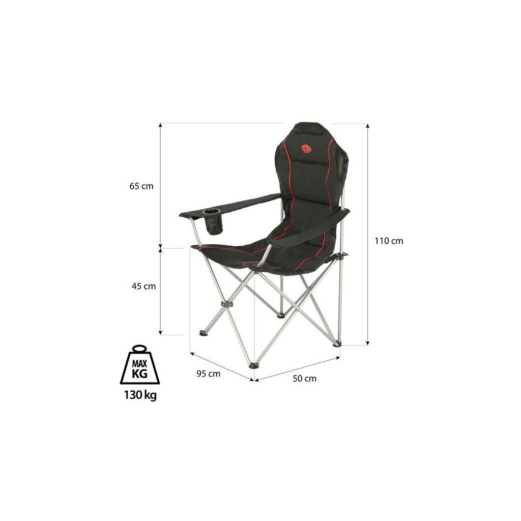 Jedná se o univerzální křeslo, které obstojí v jakýchkoliv podmínkách a terénech. Za jeho stabilitu odpovídají pevné ocelové profily o průměru 16 mm. Díky robustní konstrukci a polyesteru v úpravě 600D Oxford, který je velmi odolný, má křeslo nosnost až 130 kg. Doplněním jsou protiskluzové nožky, které zabraňují posouvání.
