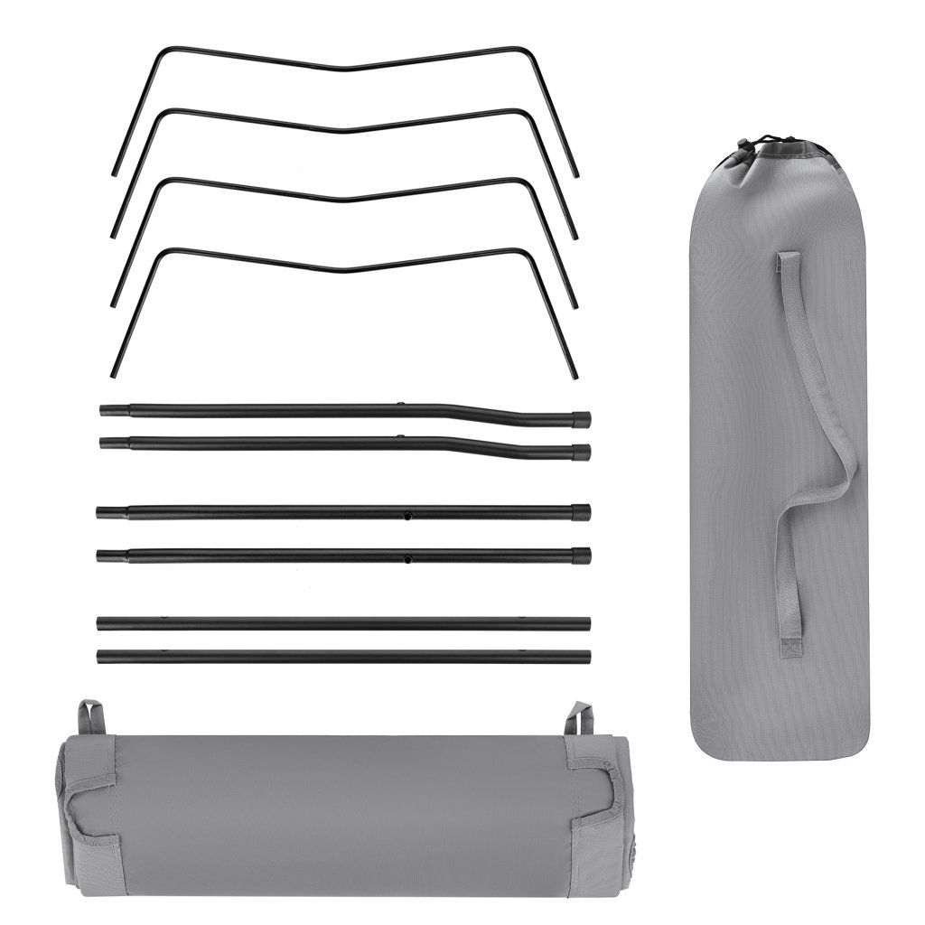 Potah postele je vyroben z odolného polyesteru v úpravě 600D Oxford, který je známý svou odolností proti oděru, roztažení a vlhkosti. Tento materiál zaručuje nejen dlouhou životnost, ale také pohodlí – je dostatečně napnutý a prodyšný, takže se uživatel cítí pohodlně i během teplých letních nocí.