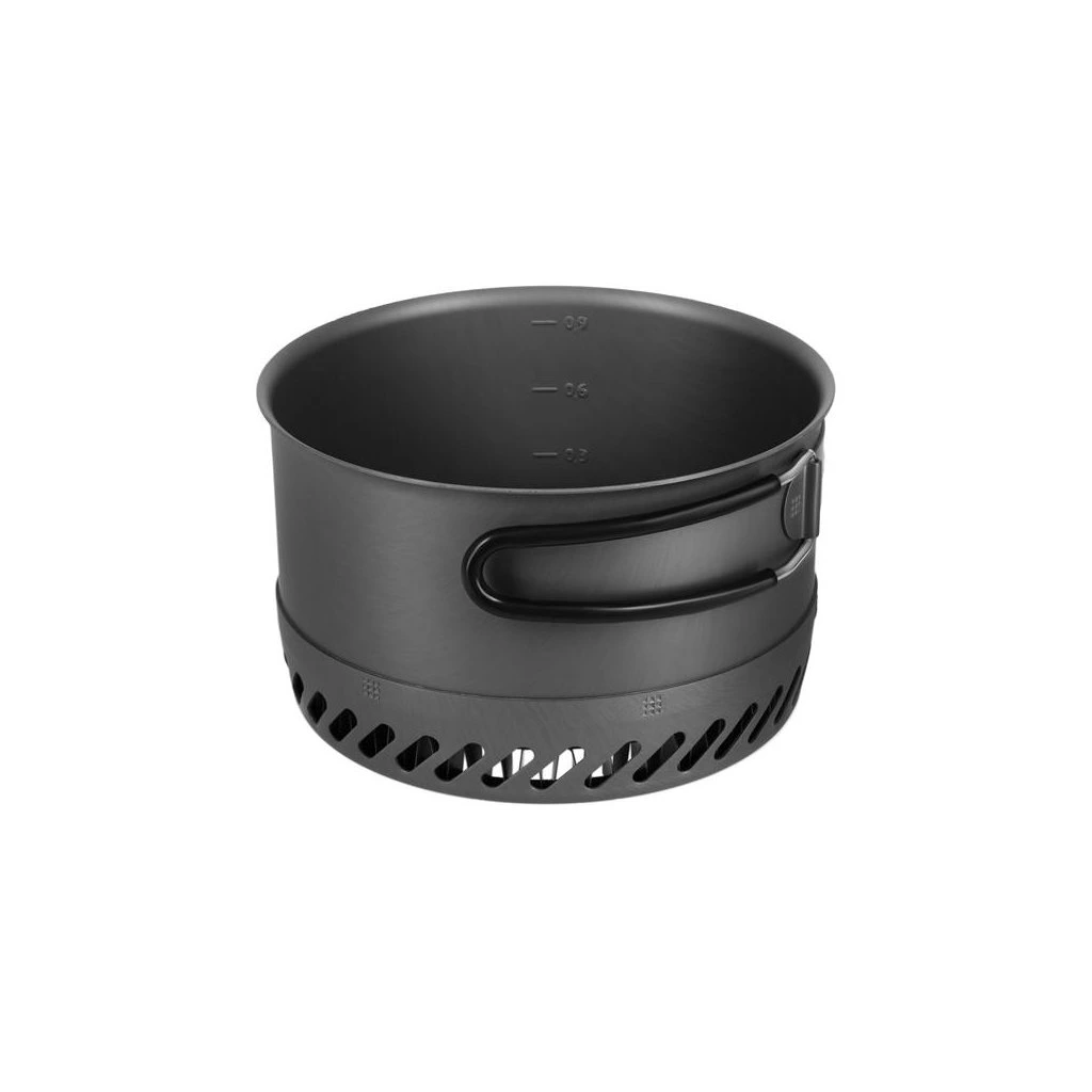 Tělo hrnce je vyrobeno z eloxovaného hliníku – materiálu, který zajišťuje nízkou hmotnost a velmi dobrou odolnost proti mechanickému poškození. Hliník se rychle zahřívá, což urychluje vaření a umožňuje komfortní přípravu pokrmů v polních podmínkách.