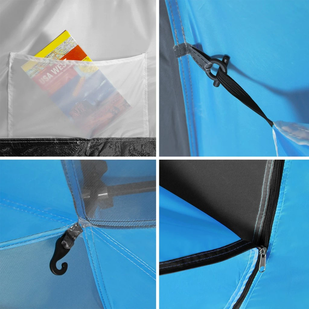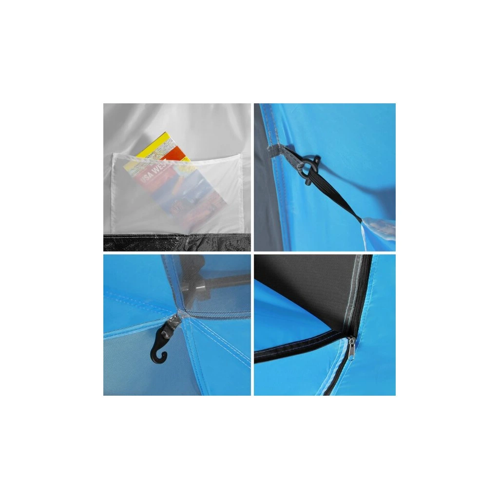 Čtyři vnitřní kapsy umožňují udržet pořádek a mít po ruce nezbytné věci. Háček pod stropem v každé ložnici slouží k zavěšení svítilny. A speciální podlaha v předsíni s odnímatelným prahem účinně zabraňuje pronikání písku, prachu a bláta dovnitř, zároveň usnadňuje čištění interiéru.