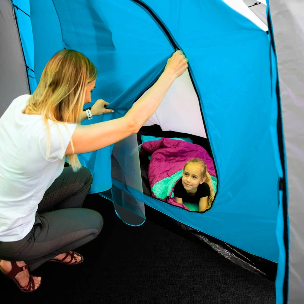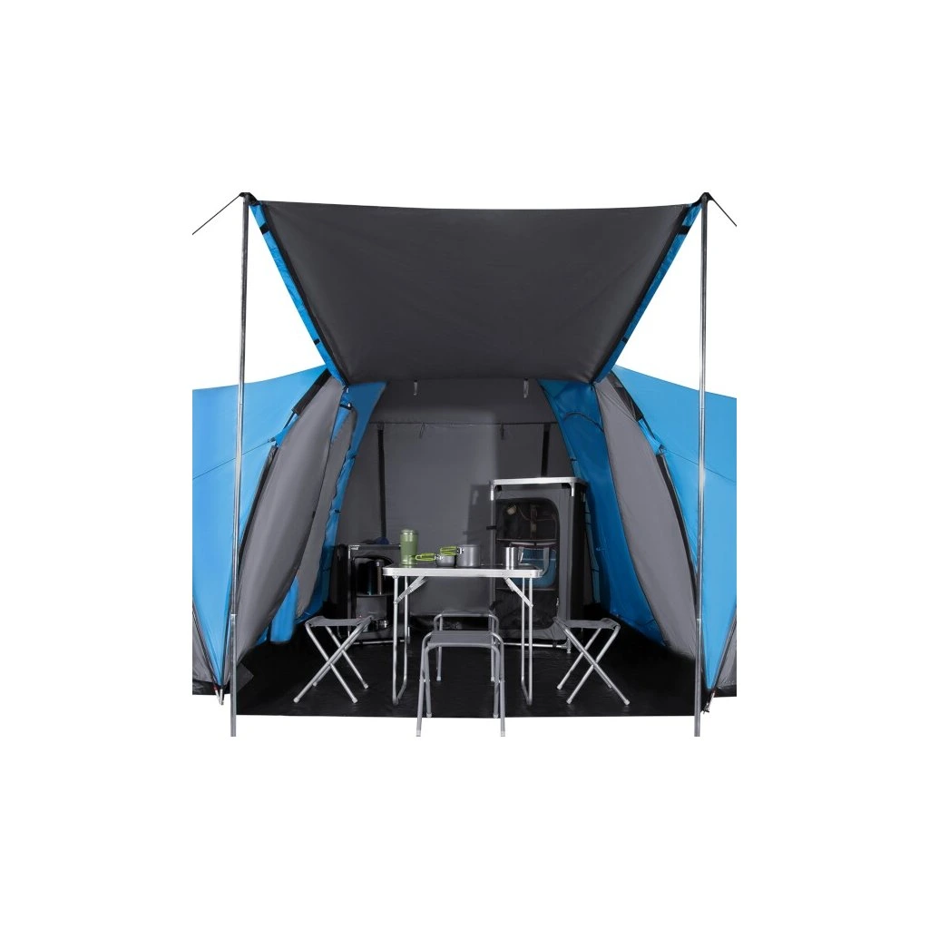 Highland nabízí dvě samostatné ložnice, každou pro tři osoby, a velkou předsíň o rozměrech 210 × 210 × 200 cm. To je dostatek prostoru k pohodlnému pobytu uvnitř stanu – ať už odpočíváte, nebo se schováváte před deštěm.