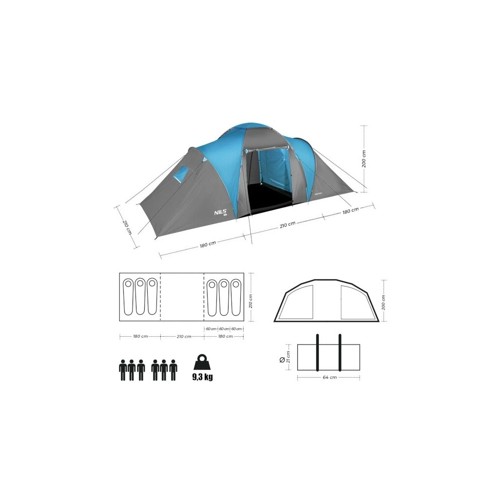 Pokud hledáte odolný a pohodlný a dostatečně prostorný stan na rodinnou dovolenou v kempu – model NILS Camp NC6031 Highland je ideální volbou pro vás. Tento dvouplášťový stan pojme až šest osob ve dvou samostatných ložnicích. Další výhodou je prostorná předsíň s podlážkou, která poskytuje pohodlné místo pro společné trávení času nebo uskladnění vybavení bez ohledu na počasí.