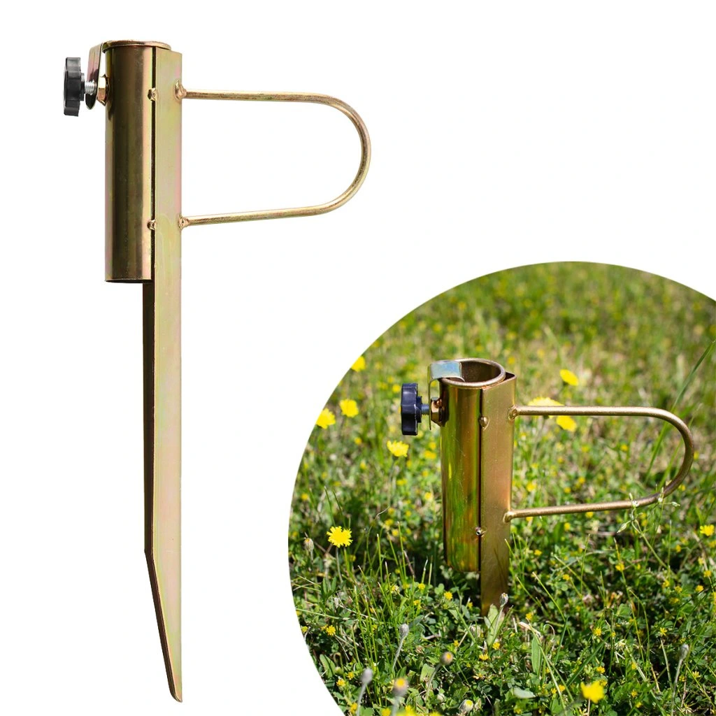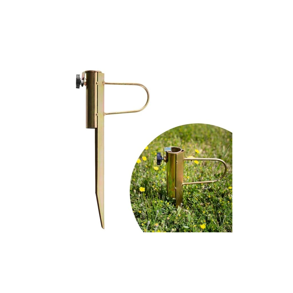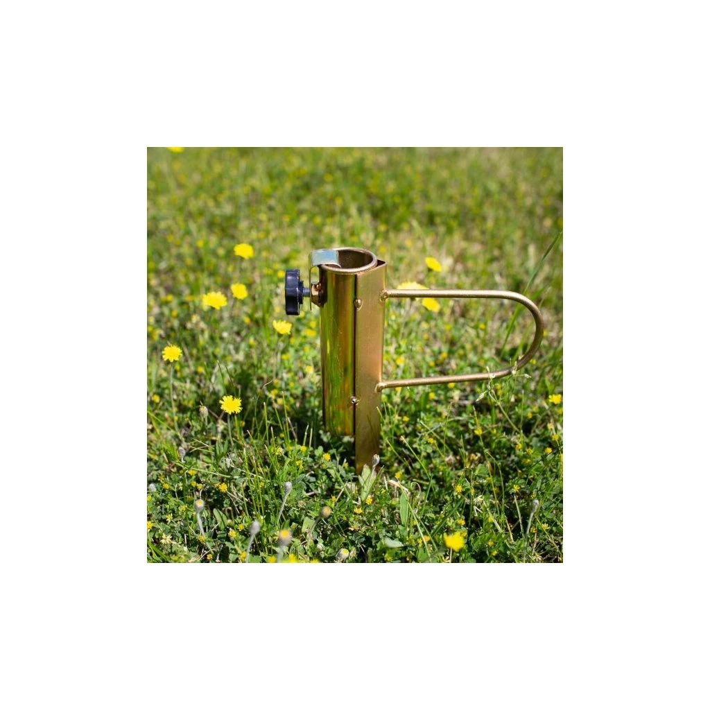 Ocelový držák NC7817 je ideálním doplňkem pro stabilní upevnění slunečníku na zahradě, nebo na travnaté ploše u jezera nebo rybníku. Trn se zapíchne do hloubky 25 centimetrů, do objímky v horní části držáku se zasune tyč slunečníku tak, aby byla zapřena o podloží apomocí šroubu s ergonomickou hlavou se zajistí proti pohybu. Takto uchycený slunečník je stabilní, neotáčí se a odolá i větru.
