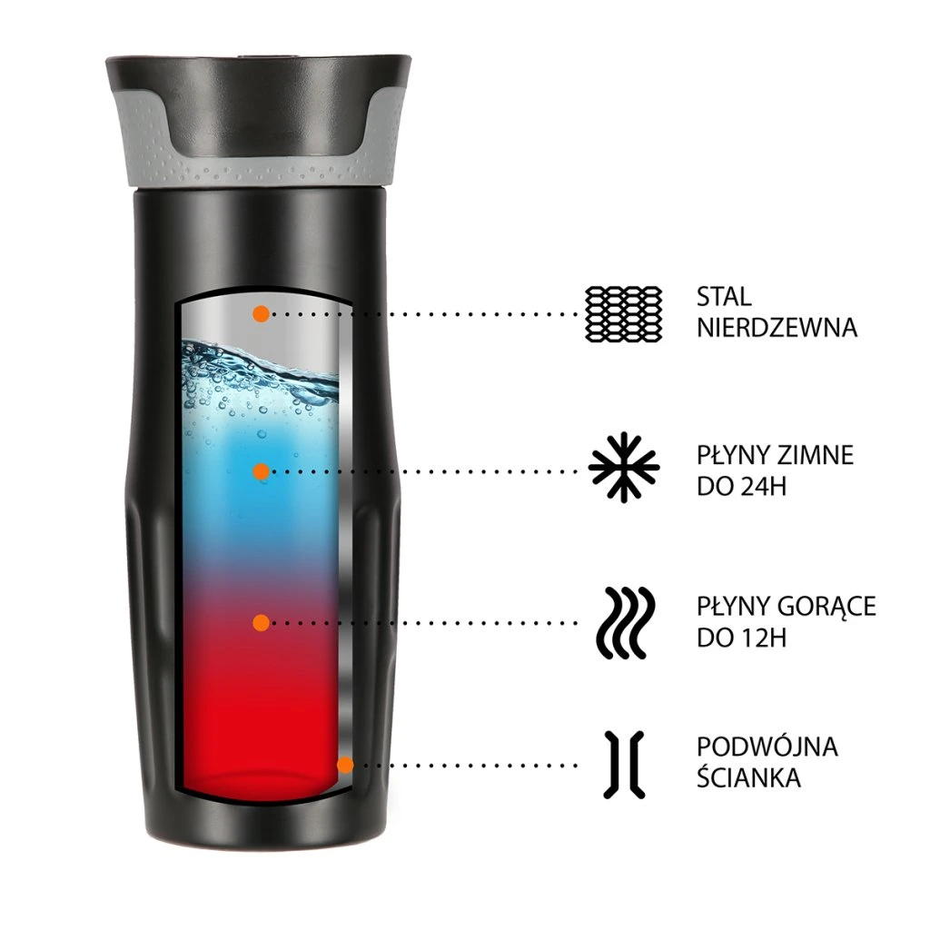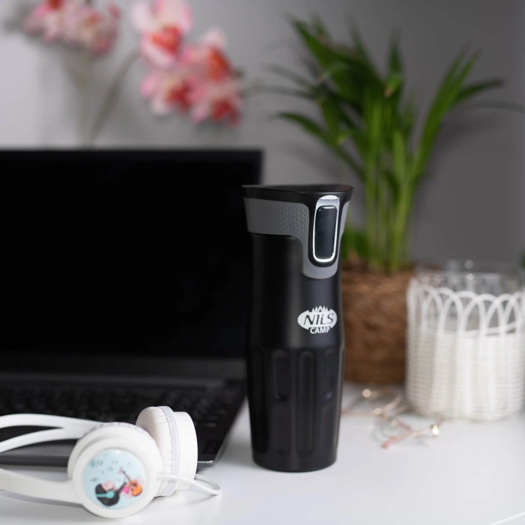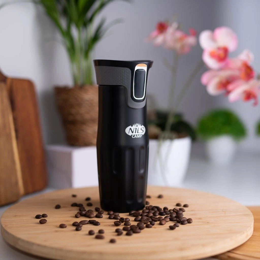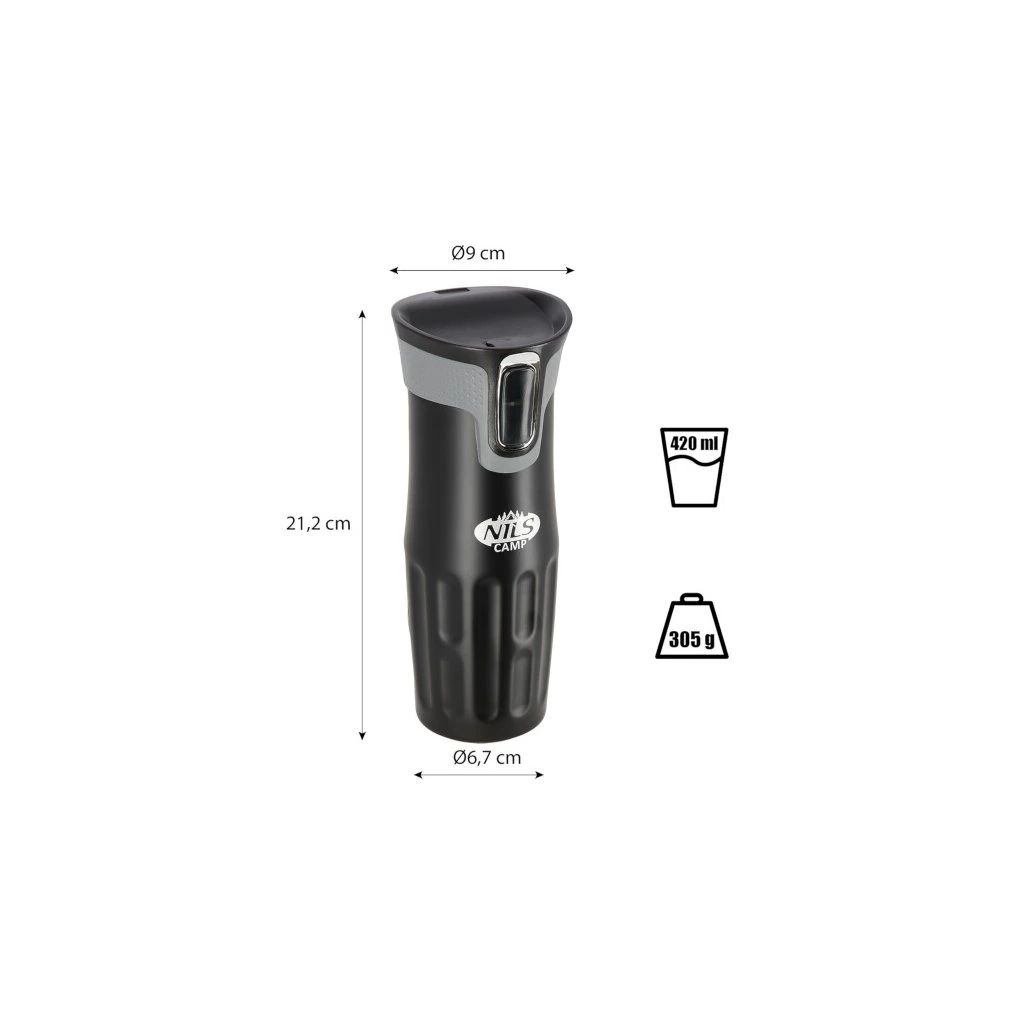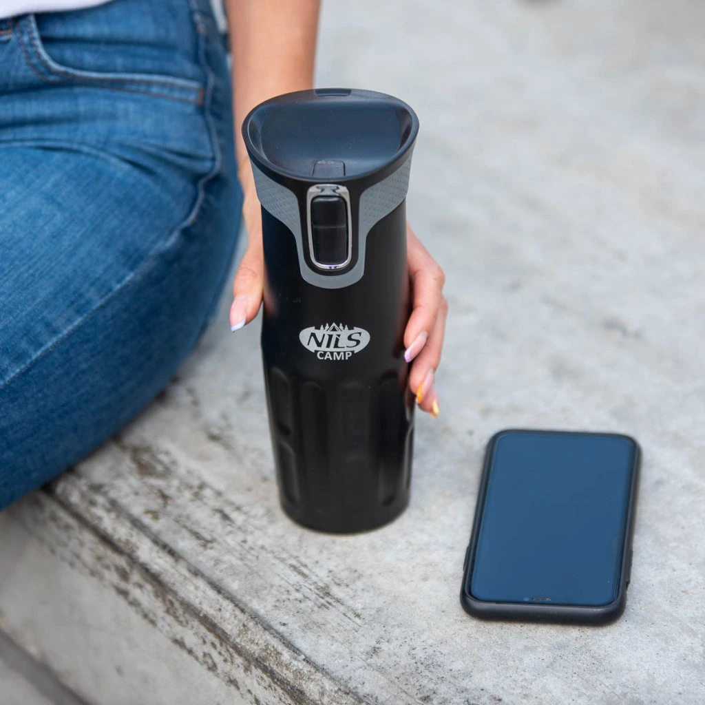 Termohrnek NILS Camp NCC06 se vyznačuje jednoduchou konstrukcí a originálním designem! Termohrnek je vyroben z nerezové oceli s dvojitou stěnou, která zaručuje uchování teplých nápojů po dobu 12 hodin a studených po dobu 24 hodin, nezáleží tedy, zda si do hrnku připravíte ranní kávu, kterou vypijete cestou do práce a nebo zda si do něj přelijete oblíbenou limonádu a vezmete si jej s sebou na několikahodinovou procházku do přírody, termohrnek udrží Váš nápoj ve správné teplotě. Model NCC06 má velmi pohodlný systém otevírání. Pokud se budete chtít napít, jednoduše stačí stisknout tlačítko na přední straně víčka a průtokový otvor se otevře. Jakmile tlačítko pustíte, hrnek se uzavře. Další velkou výhodou je, že spodní část hrnku je opatřena protiskluzovou gumou, která zvyšuje bezpečnost před rozlitím horké kávy nebo čaje, když je hrnek otevřený!