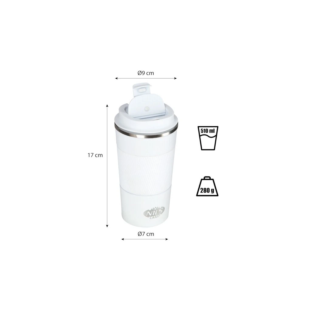 Termohrnek NILS Camp NCC09 se vyznačuje jednoduchou konstrukcí a originálním designem! Termohrnek je vyroben z nerezové oceli s dvojitou stěnou, která zaručuje uchování teplých nápojů po dobu 12 hodin a studených po dobu 24 hodin, nezáleží tedy, zda si do hrnku připravíte ranní kávu, kterou vypijete cestou do práce a nebo zda si do něj přelijete oblíbenou limonádu a vezmete si jej s sebou na několikahodinovou procházku do přírody, termohrnek udrží Váš nápoj ve správné teplotě. Model NCC09 má velmi pohodlný systém otevírání. Stačí zespodu zatlačit na víčko a je hotovo. Silikonový výlisek ve víčku zamezuje rozlití nápoje, pokud je hrnek zavřený.Další velkou výhodou je, že spodní část hrnku je opatřena protiskluzovou gumou, která zvyšuje bezpečnost před rozlitím horké kávy nebo čaje, když je hrnek otevřený!