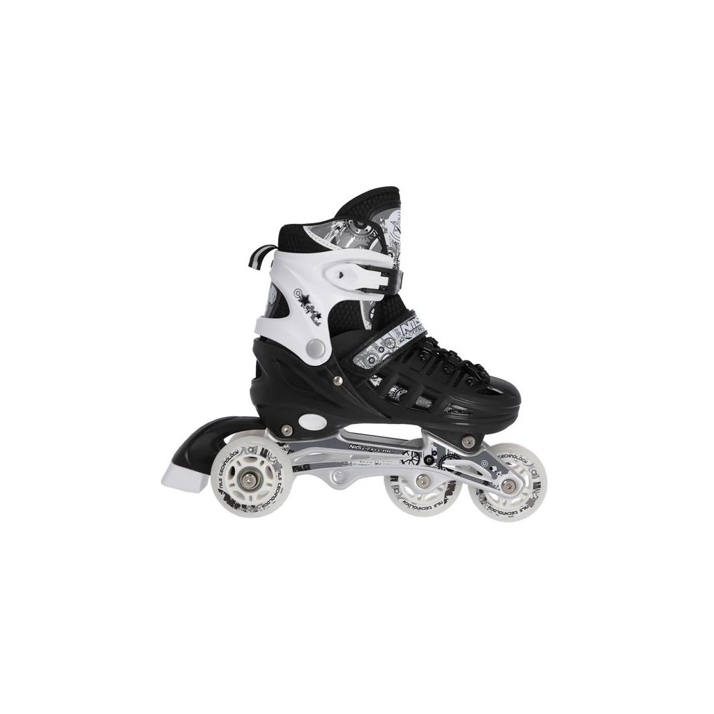Brusle NILS Extreme NH10905 jsou multifunkční model, který nabízí hned 4 možnosti sestavení podvozku – jako brusle na led, in-line brusle, taneční (quad) brusle a pro nejmenší kombinaci 2+1+1 + nůž na led. Díky tomu jde o univerzální řešení, které se přizpůsobí věku i dovednostem uživatele a poskytne radost z jízdy po celý rok.