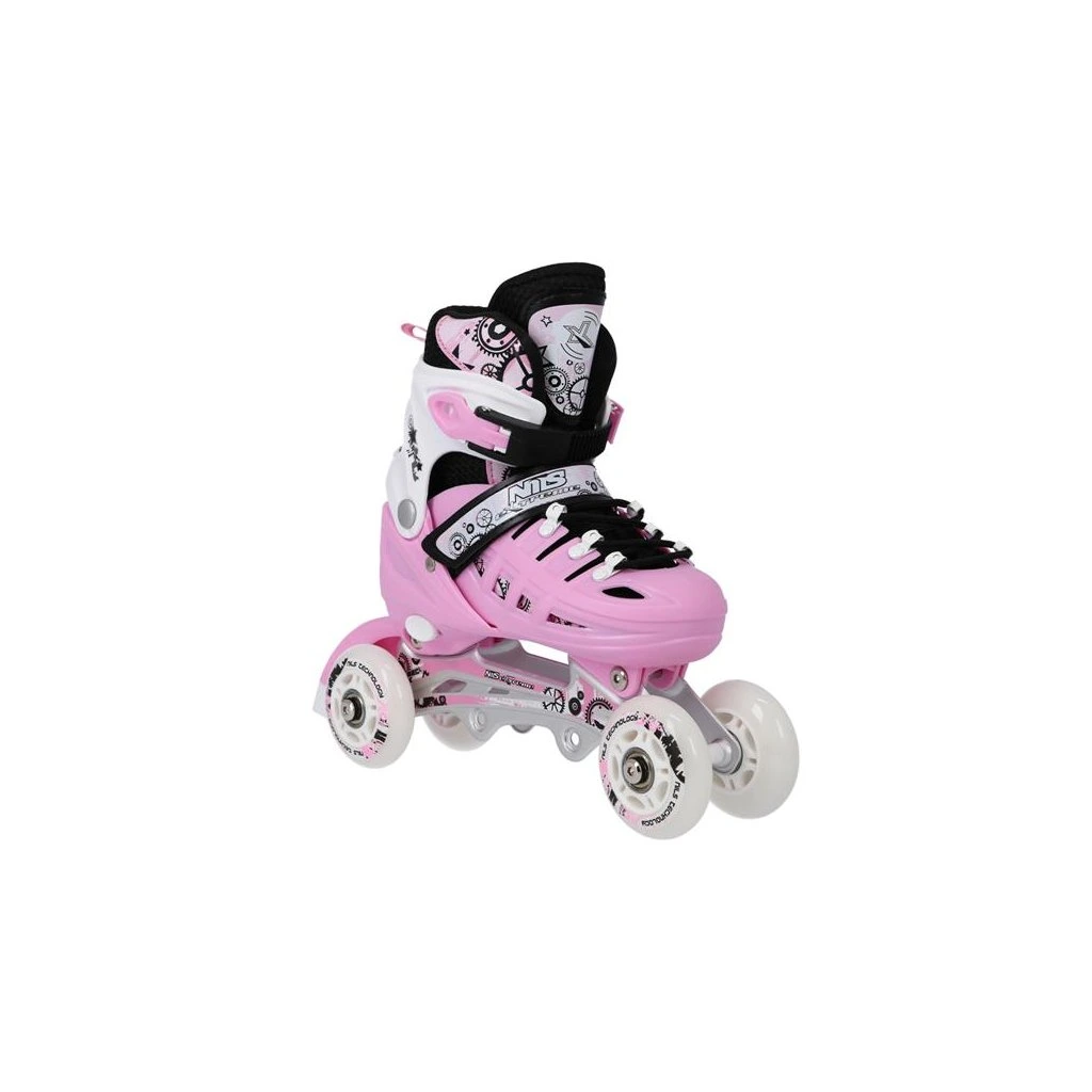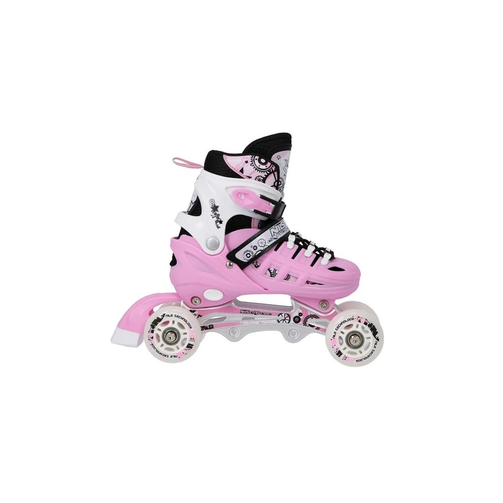 Brusle NILS Extreme NH10905 jsou multifunkční model, který nabízí hned 4 možnosti sestavení podvozku – jako brusle na led, in-line brusle, taneční (quad) brusle a pro nejmenší kombinaci 2+1+1 + nůž na led. Díky tomu jde o univerzální řešení, které se přizpůsobí věku i dovednostem uživatele a poskytne radost z jízdy po celý rok.