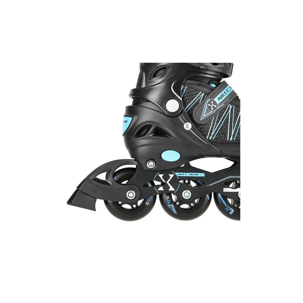 Model NH11912 A je vybaven systémem pro změnu velikosti. Pomocí stisku tlačítka a posunutí špičky si můžete zvolit velikost, která sedí přesně na Vaší nohu. Brusle s tímto systémem se také pořizují dětem, kdy bota "roste" společně s nohou dítěte.