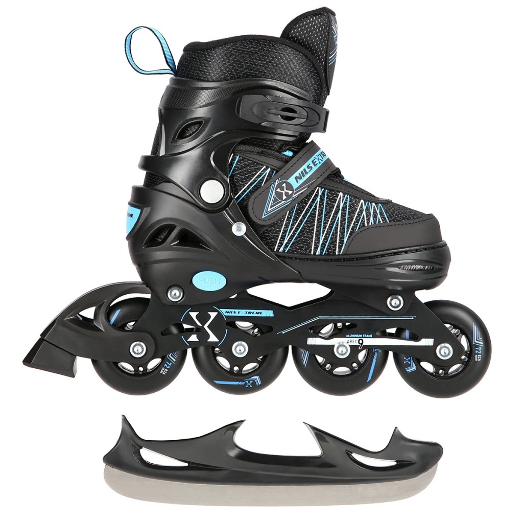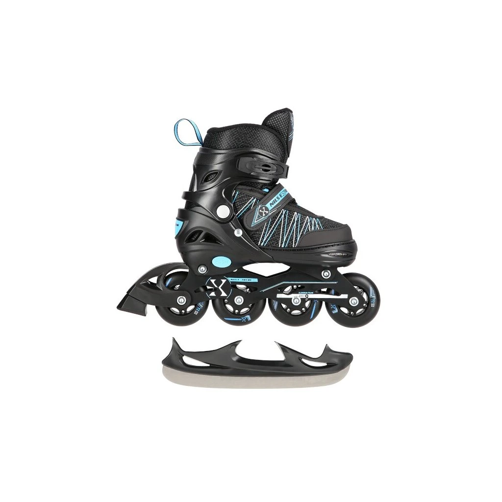 NILS Extreme NH11912 A jsou celoroční brusle pro všechny milovníky letního i zimního bruslení. Brusle mají vyměnitelný podvozek, takže se dají použít buď jako klasické In-line, nebo lední brusle.