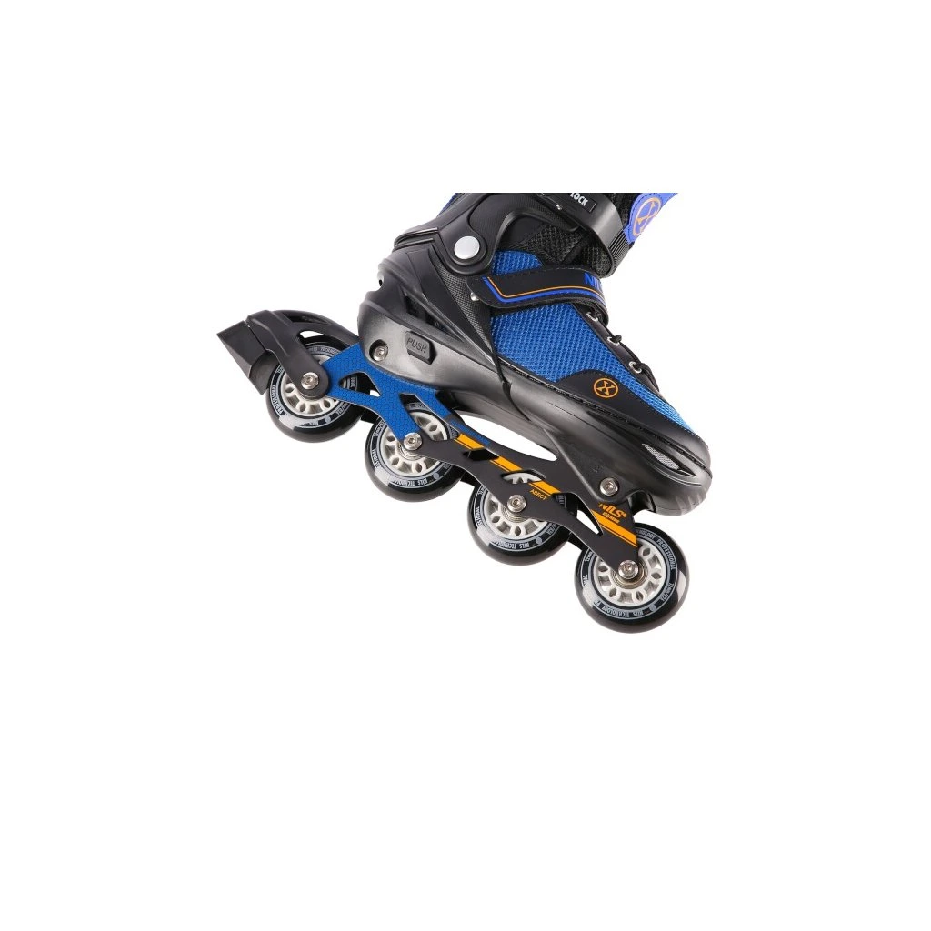 Hliníkový podvozek je osazen PU kolečky o tvrdosti 82A, ta je ideálním kompromisem mezi rychlostí, životností a pohodlím. Kolečka jsou osazena ložisky ABEC 7 pro svižnou a plynulou jízdu. Skelet brusle je vyroben z polypropylenu, který dobře přenáší energii z odrazu na kolečka a zároveň vydrží i připadný pád. Pohodlná, poloměkká bota je vyrobena z kombinace EVA a pěny o vysoké hustotě. Proti případnému vlhku ochrání prodyšná membrána. Vnitřní bota nemá krytou špičku, takže dobře větrá a noha se méně potí. Zapínání je řešeno klasickou trojkombinací - šněrování, řemínek se suchým zipem a dvousekční přezka. Pravá brusle je osazena brzdou.