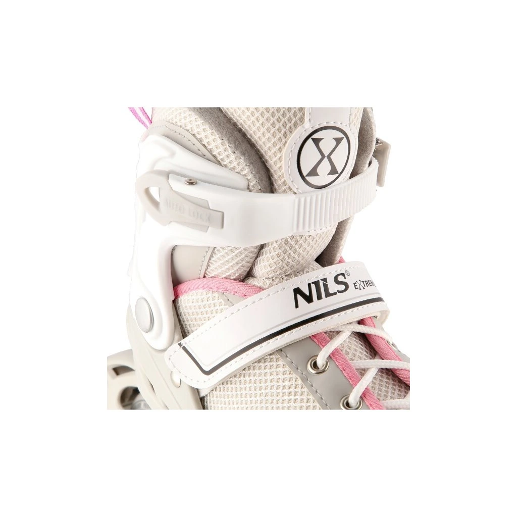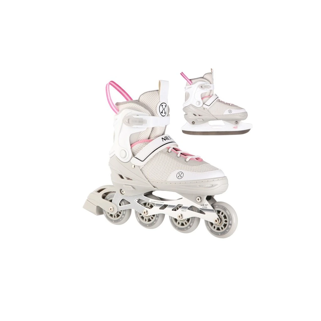 Kolečkové brusle NILS Extreme NH18188A jsou určeny k rekreačním projížďkám pro začínající a středně pokročilé bruslaře. Model NH18188A v sobě spojuje poutavý design a kvalitní materiály. Model má vyměnitelný podvozek a brusle tak využijete jak na asfaltu, tak na ledu.
