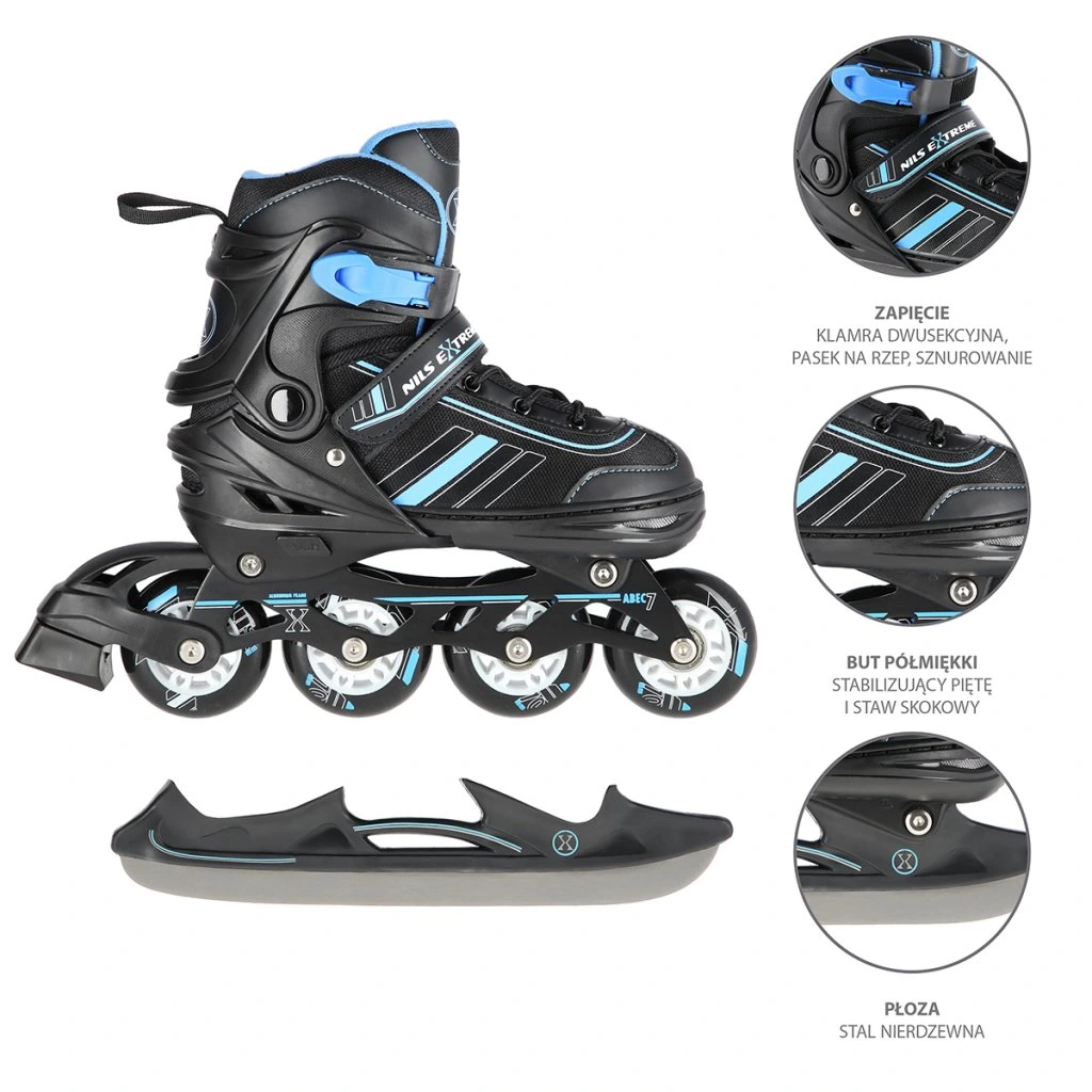 NILS Extreme NH18191 jsou kolečkové brusle s vyměnitelným nožem na led, které jsou určeny pro začínající a středně pokročilé uživatele.