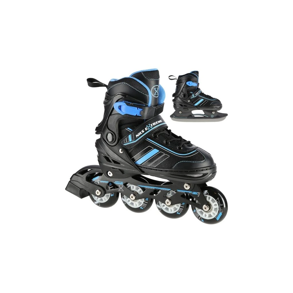 NILS Extreme NH18191 jsou kolečkové brusle s vyměnitelným nožem na led, které jsou určeny pro začínající a středně pokročilé uživatele.