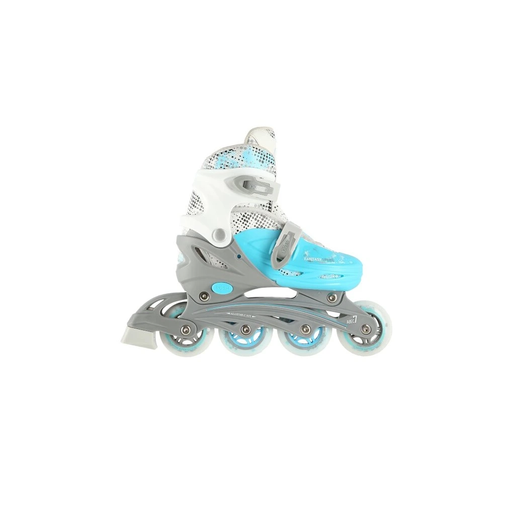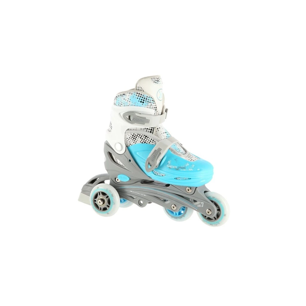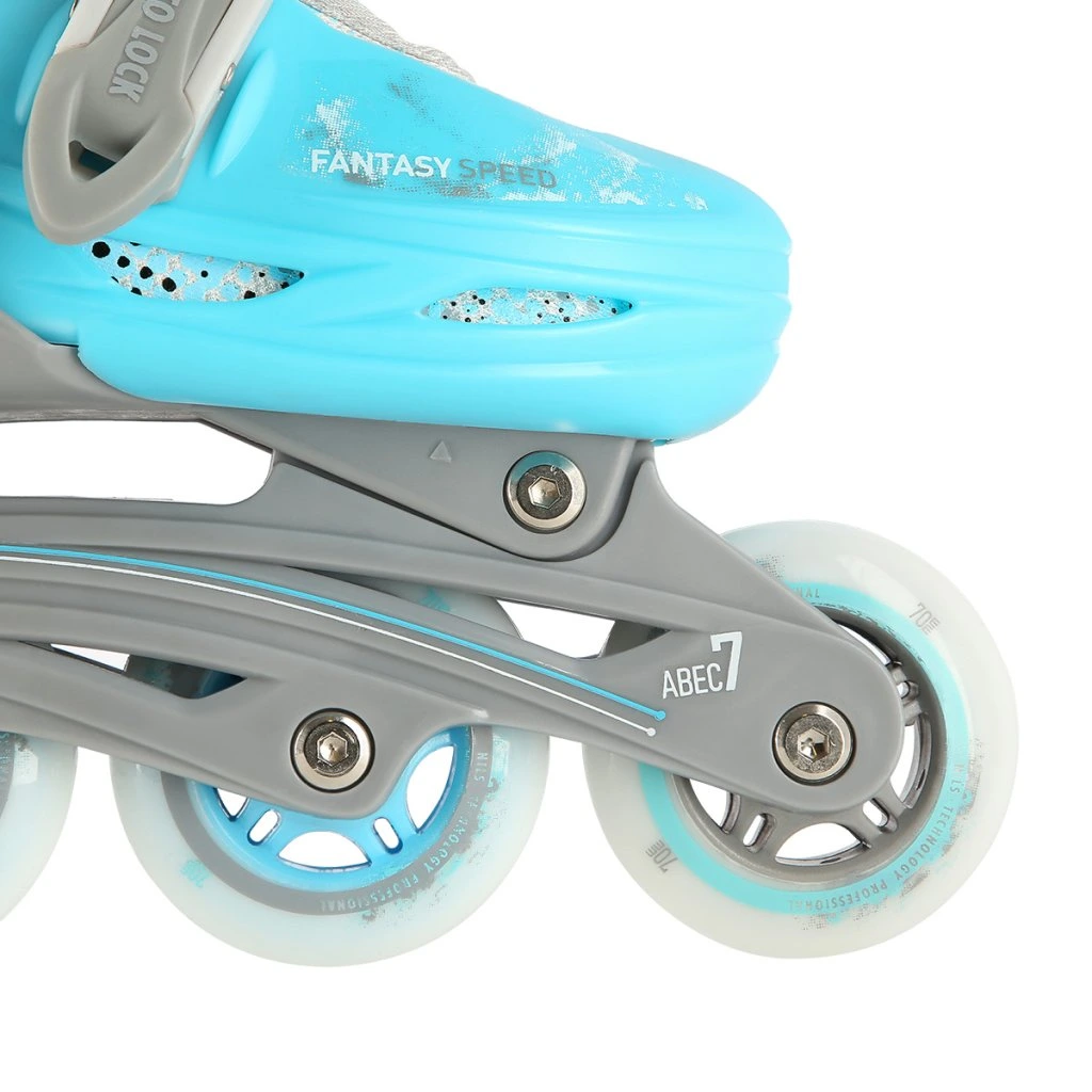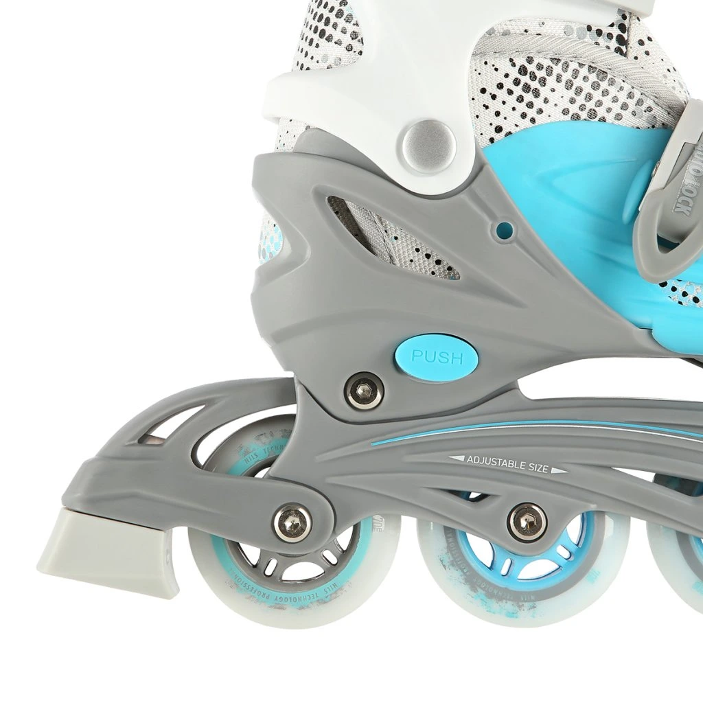 Plastový podvozek je osazen měkkými PU kolečky s ložisky ABEC7 pro svižnou jízdu. Vnější bota je pomocí stisku tlačítka nastavitelná do čtyř velikostí, toto řešení umožňuje precizní přizpůsobení velikosti podle aktuálních potřeb anebo se používá jako "rostoucí bota", která "roste" spolu s nohou dítěte.