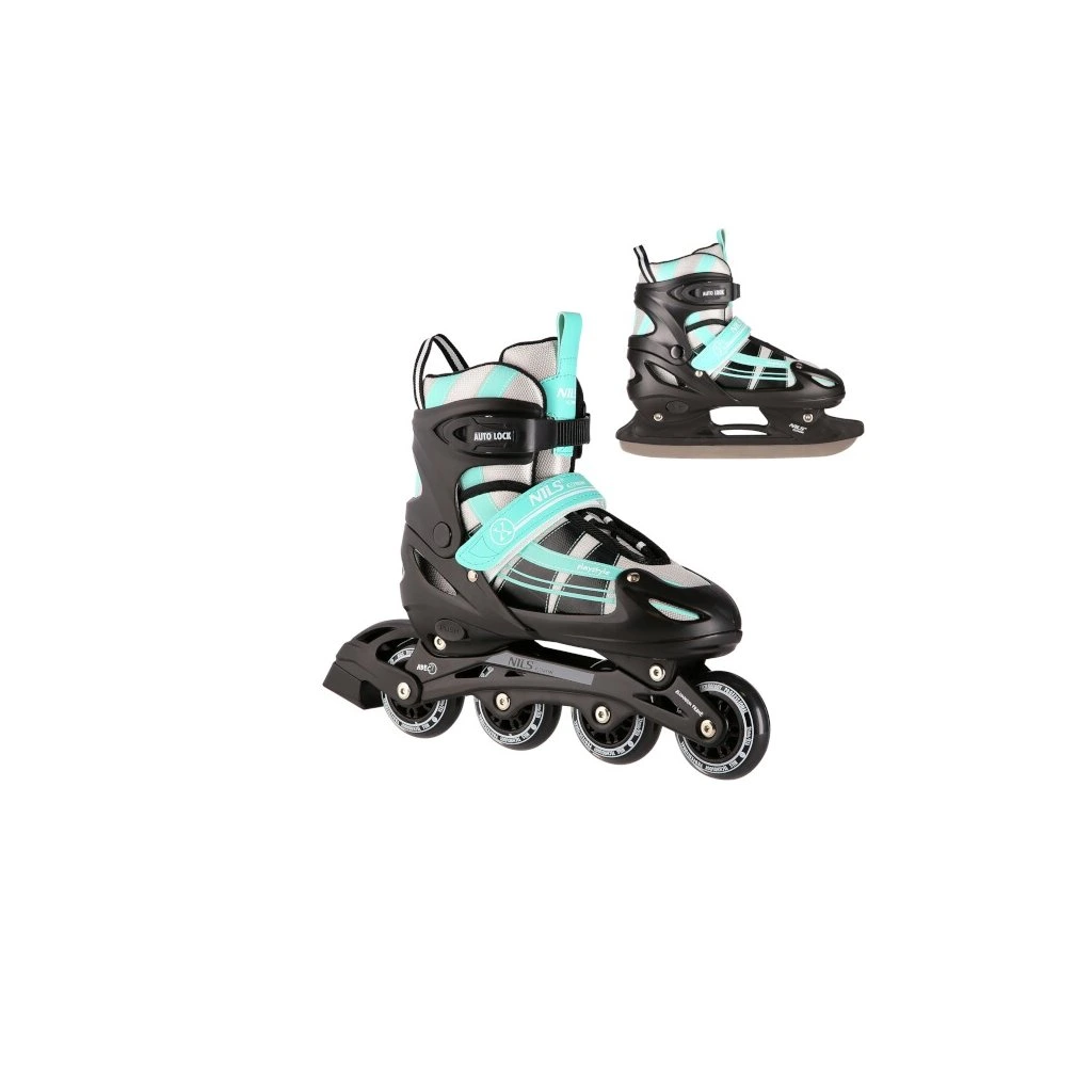 Kolečkové brusle NILS Extreme NH18366A jsou určeny k rekreačním projížďkám pro začínající a středně pokročilé bruslaře. Model NH18366A v sobě spojuje poutavý design a kvalitní materiály. Model má vyměnitelný podvozek a brusle tak využijete jak na asfaltu, tak na ledu.