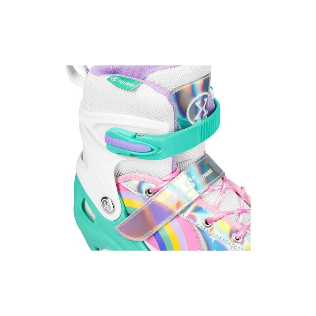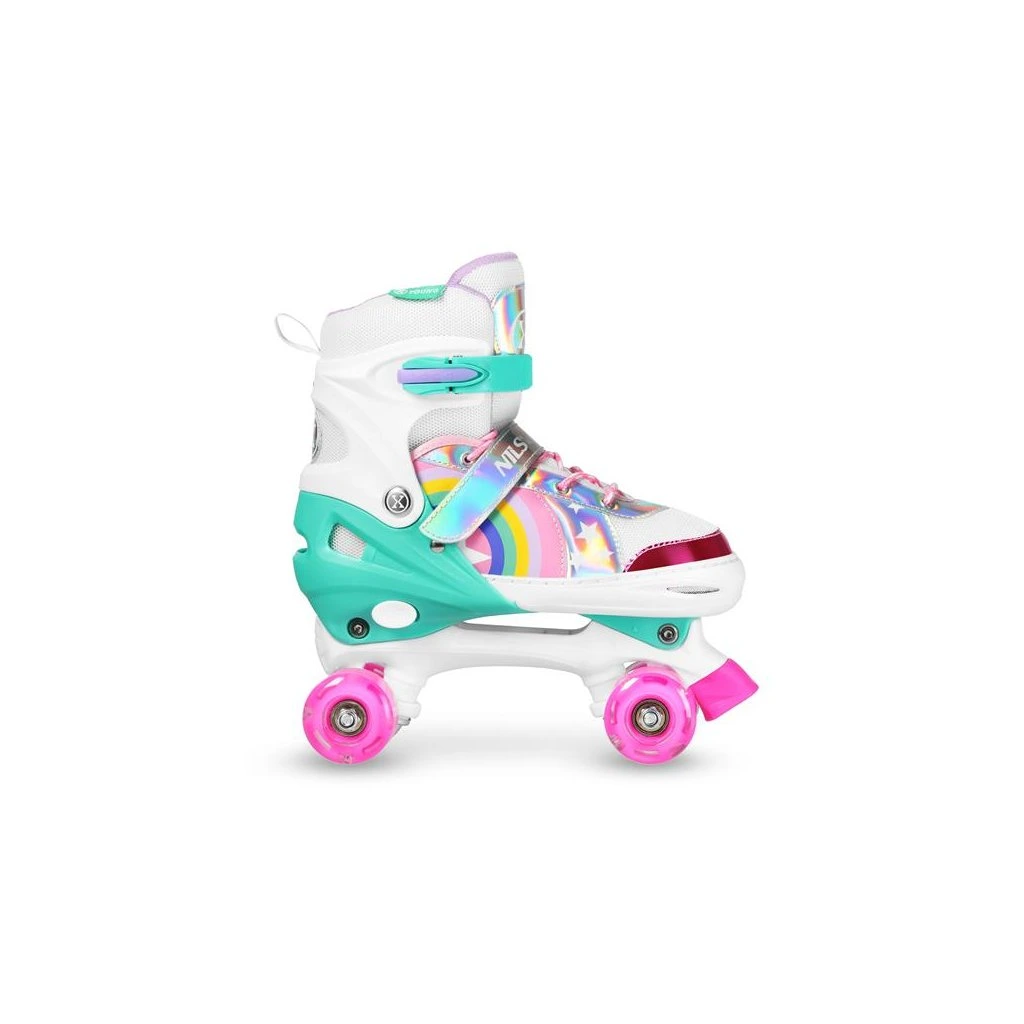 Kolečkové brusle NILS Extreme NQ0187 jsou určeny pro děti a mládež, kteří s bruslařským dobrodružstvím teprve začínají, nebo v něm chtějí stylově a bezpečně pokračovat. Tento model kombinuje atraktivní design s funkčností a kvalitním zpracováním, díky čemuž je ideální volbou jak pro rekreační jízdy v parku, tak pro zlepšování bruslařských dovedností na základní a středně pokročilé úrovni.