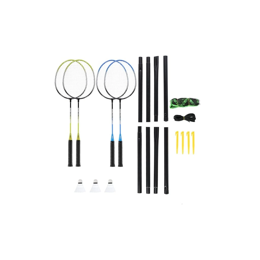 Součástí sady jsou 4 ocelové rakety, 3 nylonové letky, 2 skládací sloupky, nylonová síť, napínací šňůry, 4 kolíky a praktický obal, do kterého můžete celou sadu zabalit a uskladnit anebo si ji vzít například s sebou k vodě.